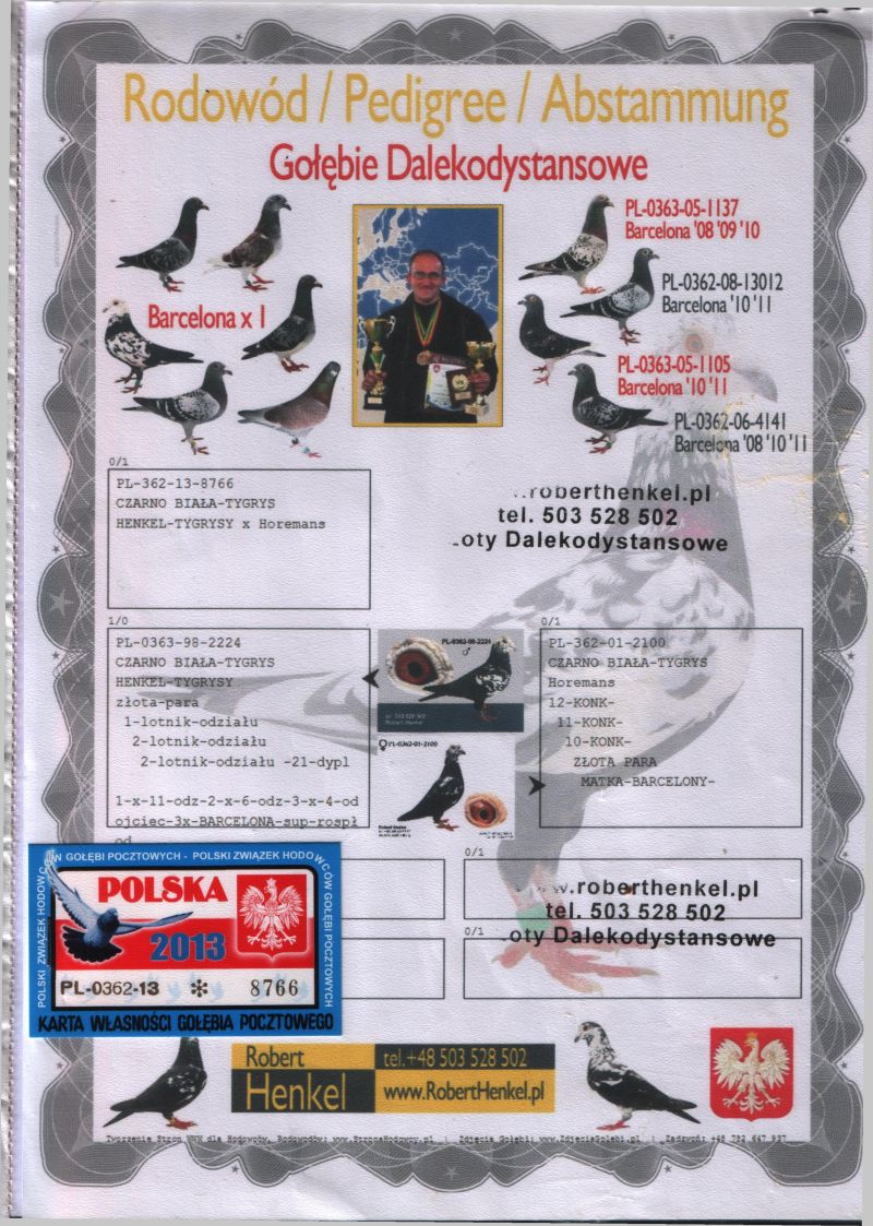 oryginlany gołąb z hodowli Karola Gardulskiego tel. 886161091