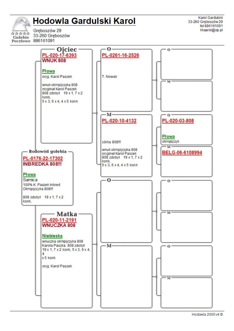 PL-0176-22-17302 - 100% K. Paszek inbred 808!!! wnuk 808 x wnuczka 808!!!