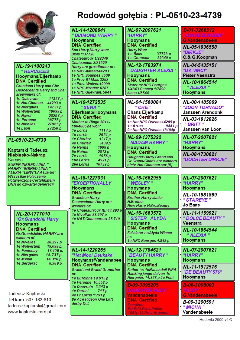 Oryginalny gołąb z hodowli Tadeusza Kapturskiego. Szczegóły pochodzenia w rodowodzie. Więcej informacji pod nr tel.: 507183810 ***transport kurier 165 zł ***NA ŻYCZENIE CERTYFIKAT DNA