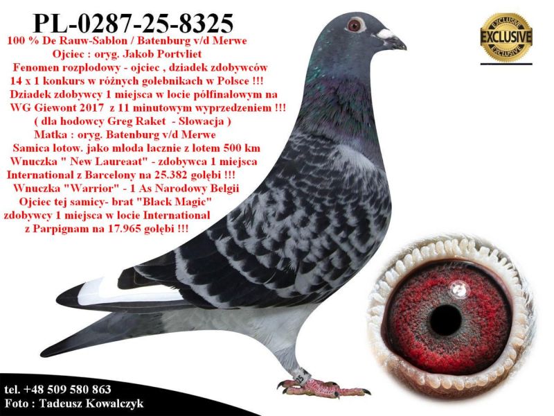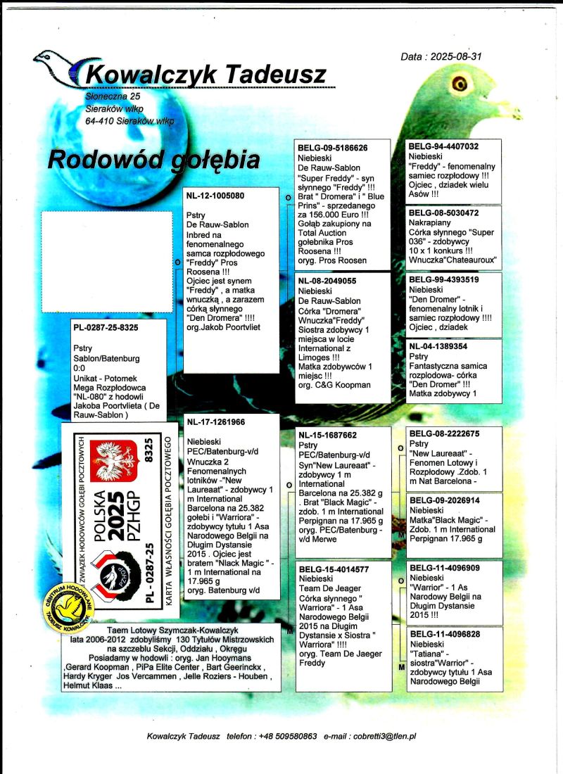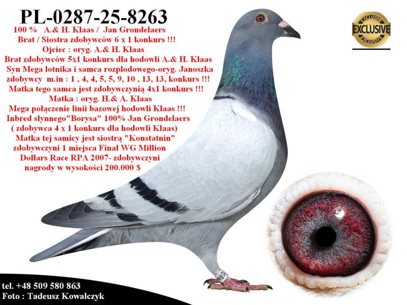 PL-0287-25-8263 Unikat - Potomek bazowych gołębi z hodowli A.& H. Klaas