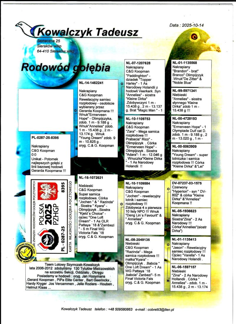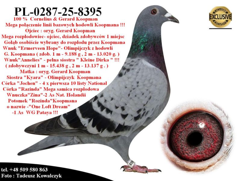 PL-0287-25-8395 Unikat - Potomek gołębi bazowych z hodowli Gerarda Koopmana