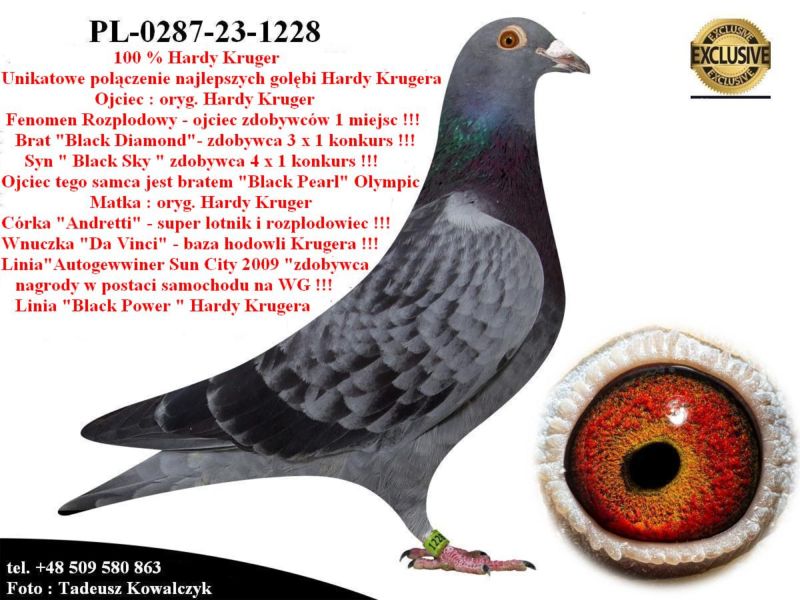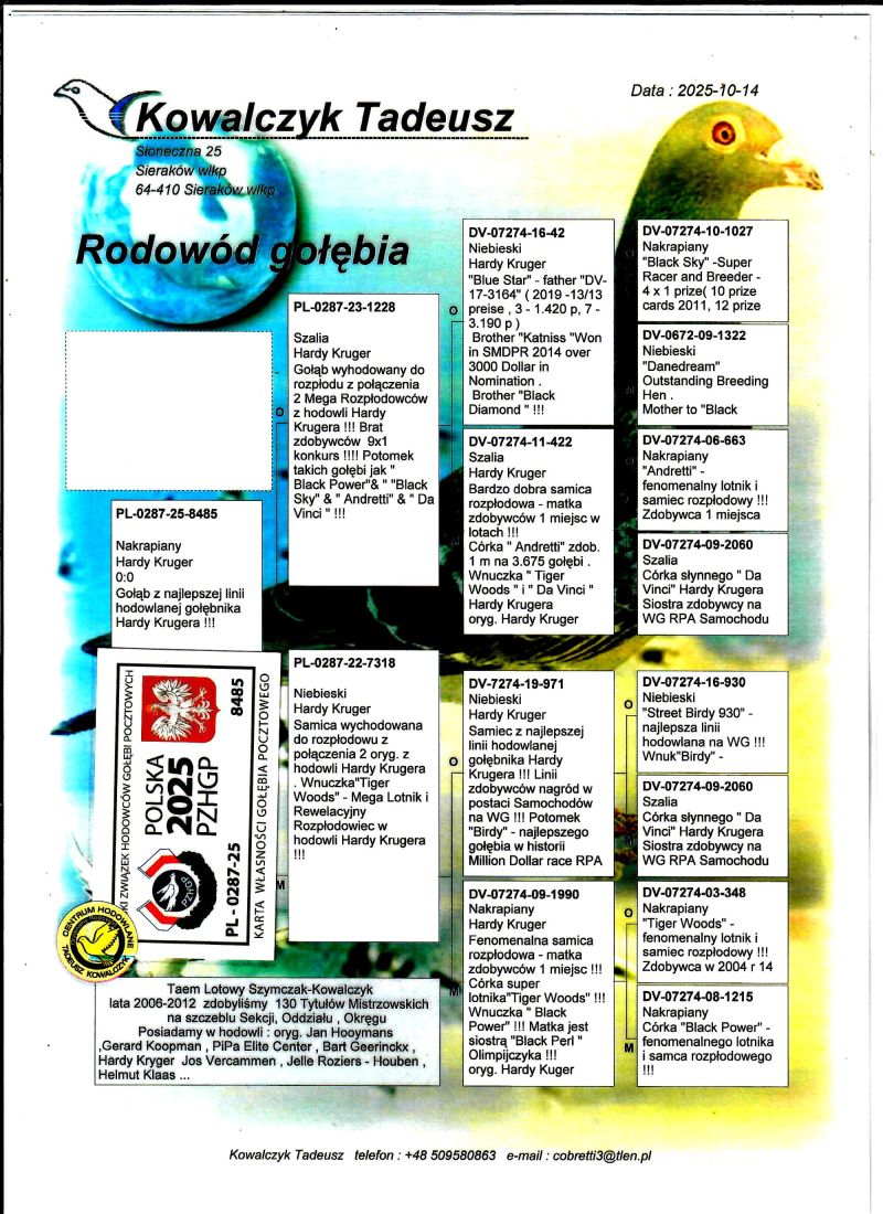 PL-0287-25-8485 Potomek najlepszych gołębi z hodowli Hardy Krugera