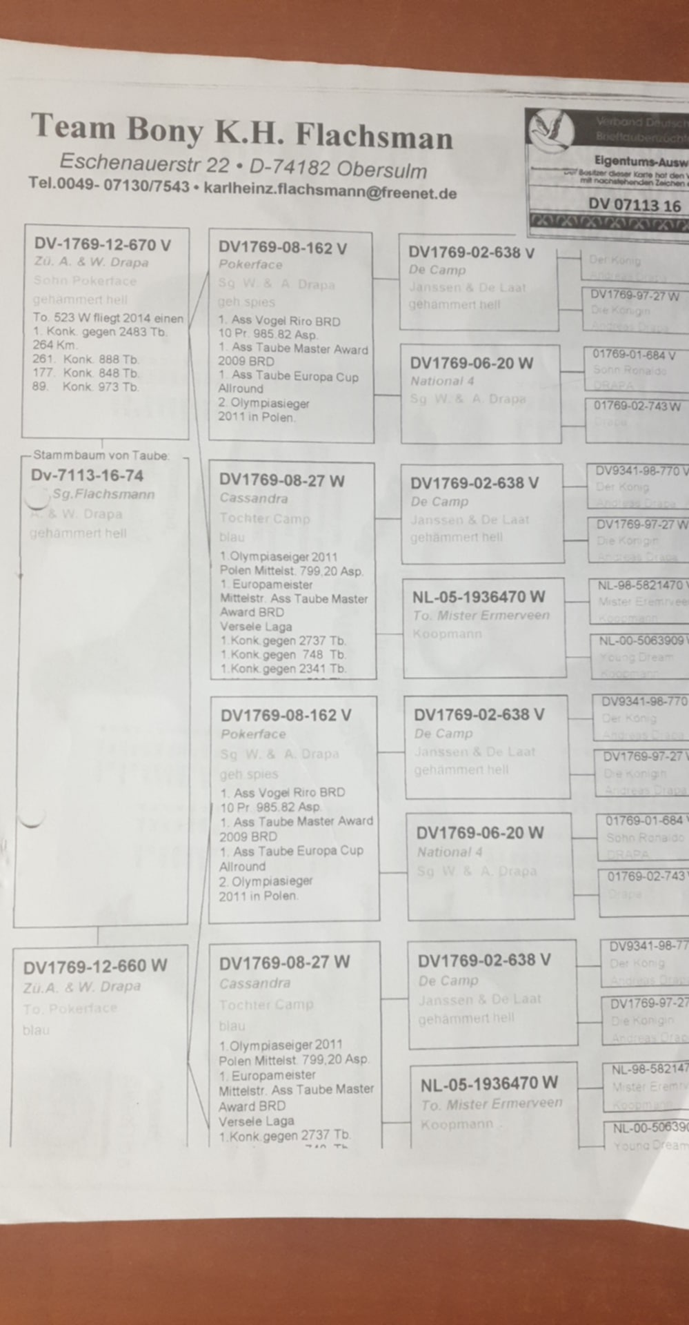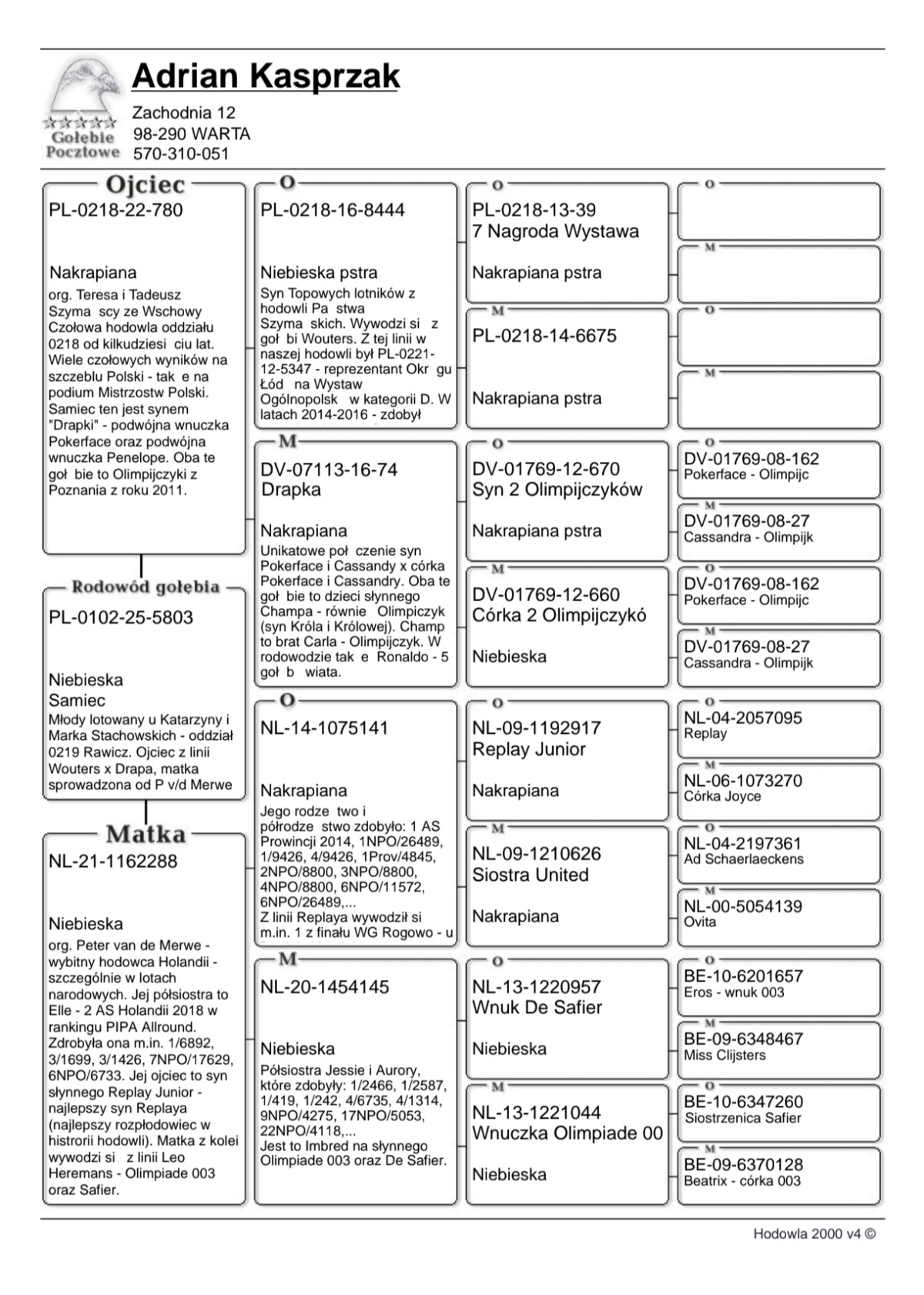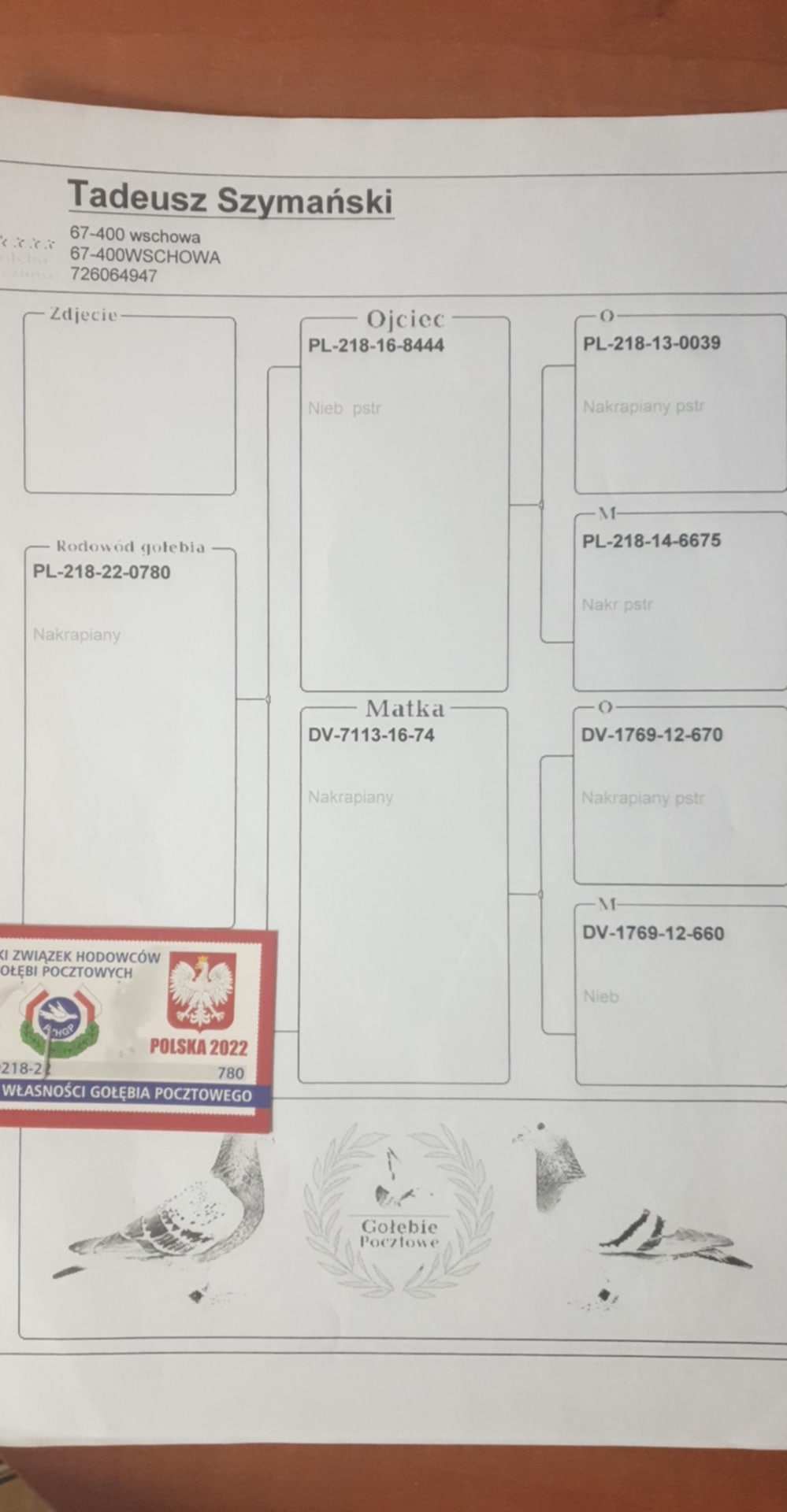 Oryg. Adrian Kasprzak Gołąb lotowany w koleżeńskiej rywalizacji na WG Gatka. Gołębie na tym gołębniku rywalizowały z gołębiami z Oddziału gdzie wywalczyły najwyższe wyniki. Gołębie zaliczyły 5 lotów w Oddziale i lot okręgowy 367 km. pod wiatr.