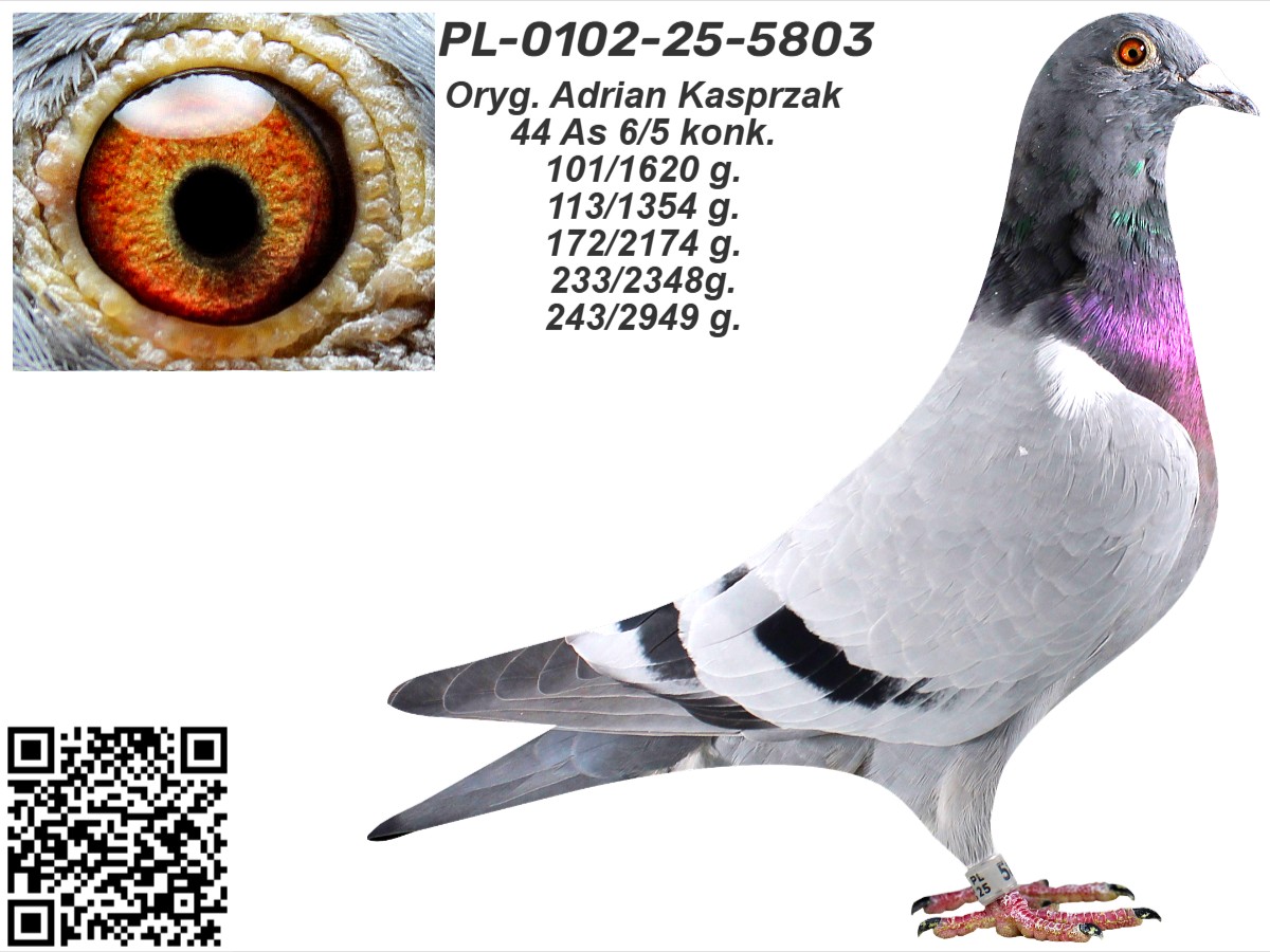 PL-0102-25-5803 - Oryg. Adrian Kasprzak Gołąb lotowany w koleżeńskiej rywalizacji na WG Gatka