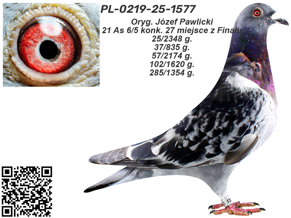 PL-0219-25-1577 - Oryg. Józef Pawlicki Gołąb lotowany w koleżeńskiej rywalizacji na WG Gatka.