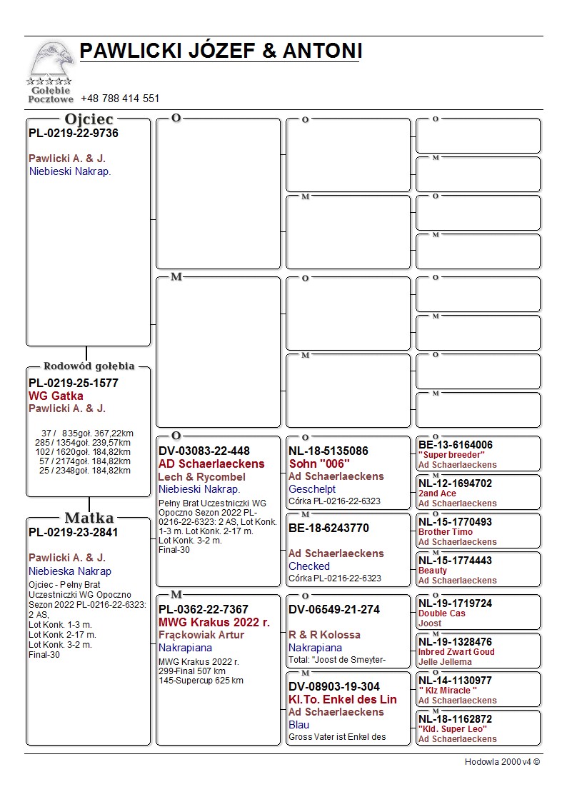 Oryg. Józef Pawlicki Gołąb lotowany w koleżeńskiej rywalizacji na WG Gatka. Gołębie na tym gołębniku rywalizowały z gołębiami z Oddziału gdzie wywalczyły najwyższe wyniki. Gołębie zaliczyły 5 lotów w Oddziale i lot okręgowy 367 km. pod wiatr.