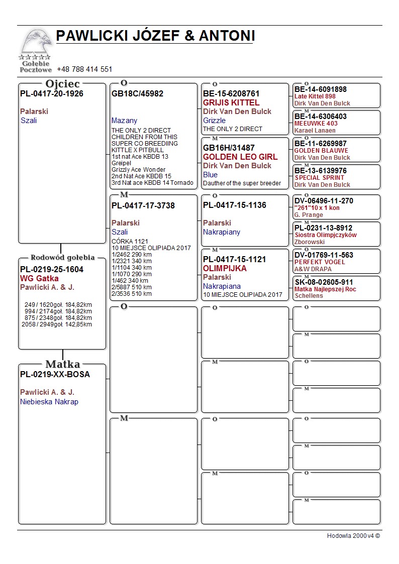 Oryg. Józef Pawlicki Gołąb lotowany w koleżeńskiej rywalizacji na WG Gatka. Gołębie na tym gołębniku rywalizowały z gołębiami z Oddziału gdzie wywalczyły najwyższe wyniki. Gołębie zaliczyły 5 lotów w Oddziale i lot okręgowy 367 km. pod wiatr.