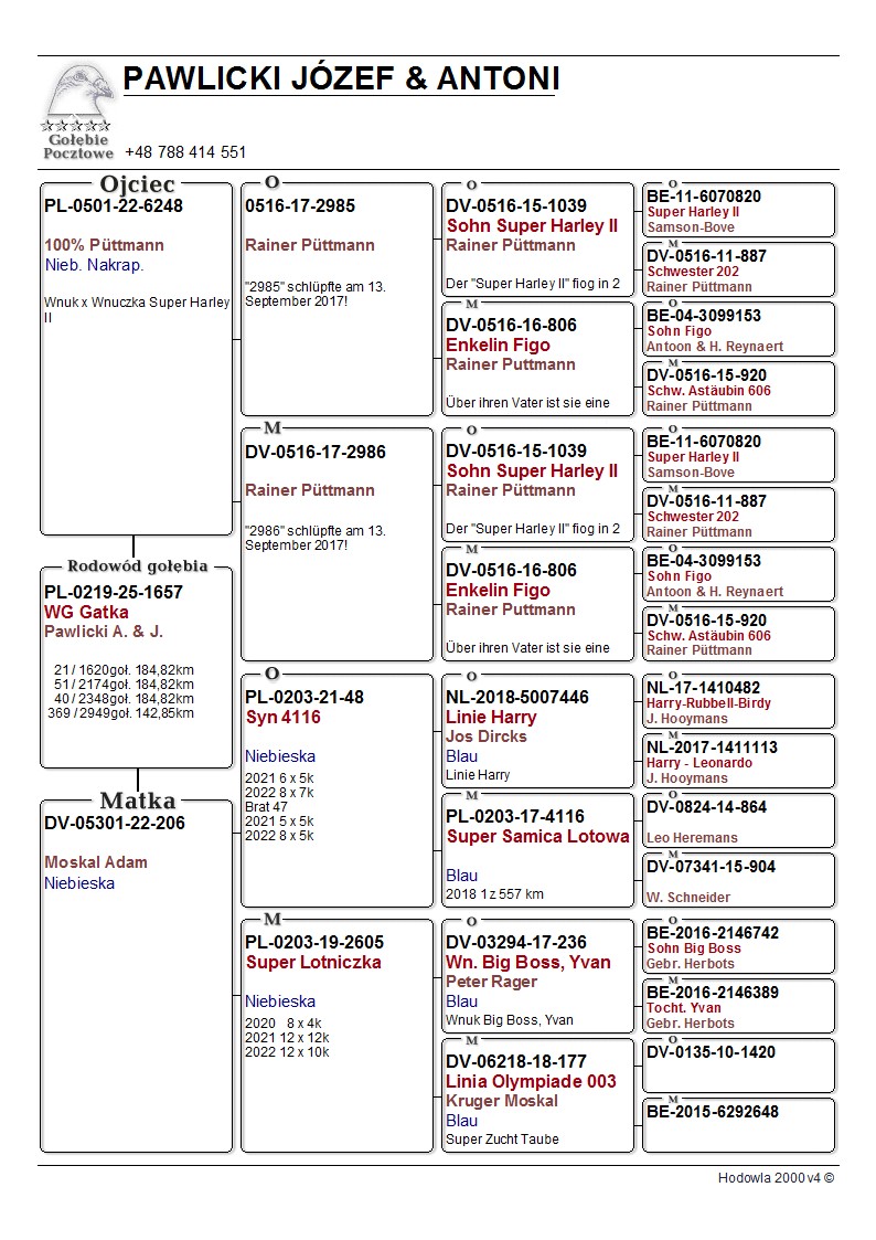 Oryg. Józef Pawlicki Gołąb lotowany w koleżeńskiej rywalizacji na WG Gatka. Gołębie na tym gołębniku rywalizowały z gołębiami z Oddziału gdzie wywalczyły najwyższe wyniki. Gołębie zaliczyły 5 lotów w Oddziale i lot okręgowy 367 km. pod wiatr.