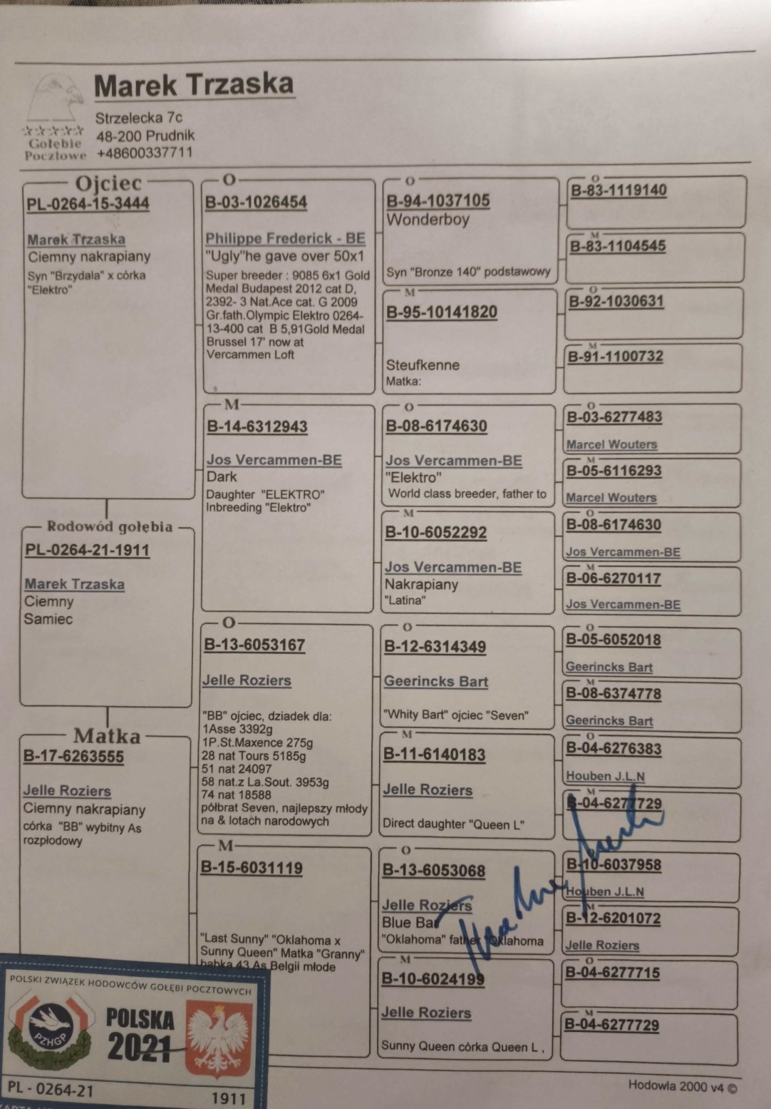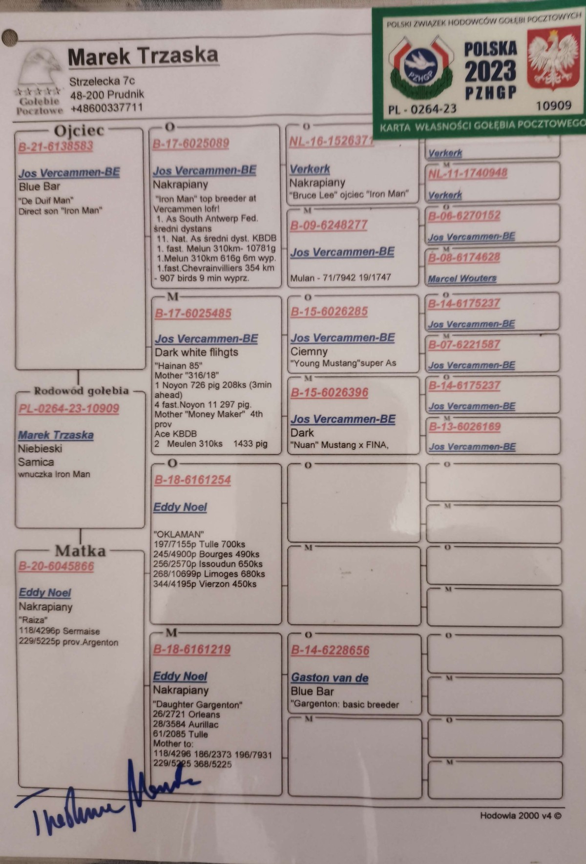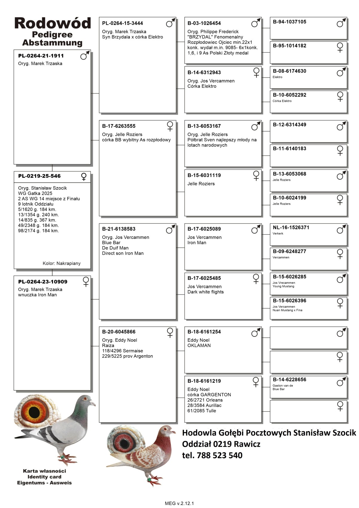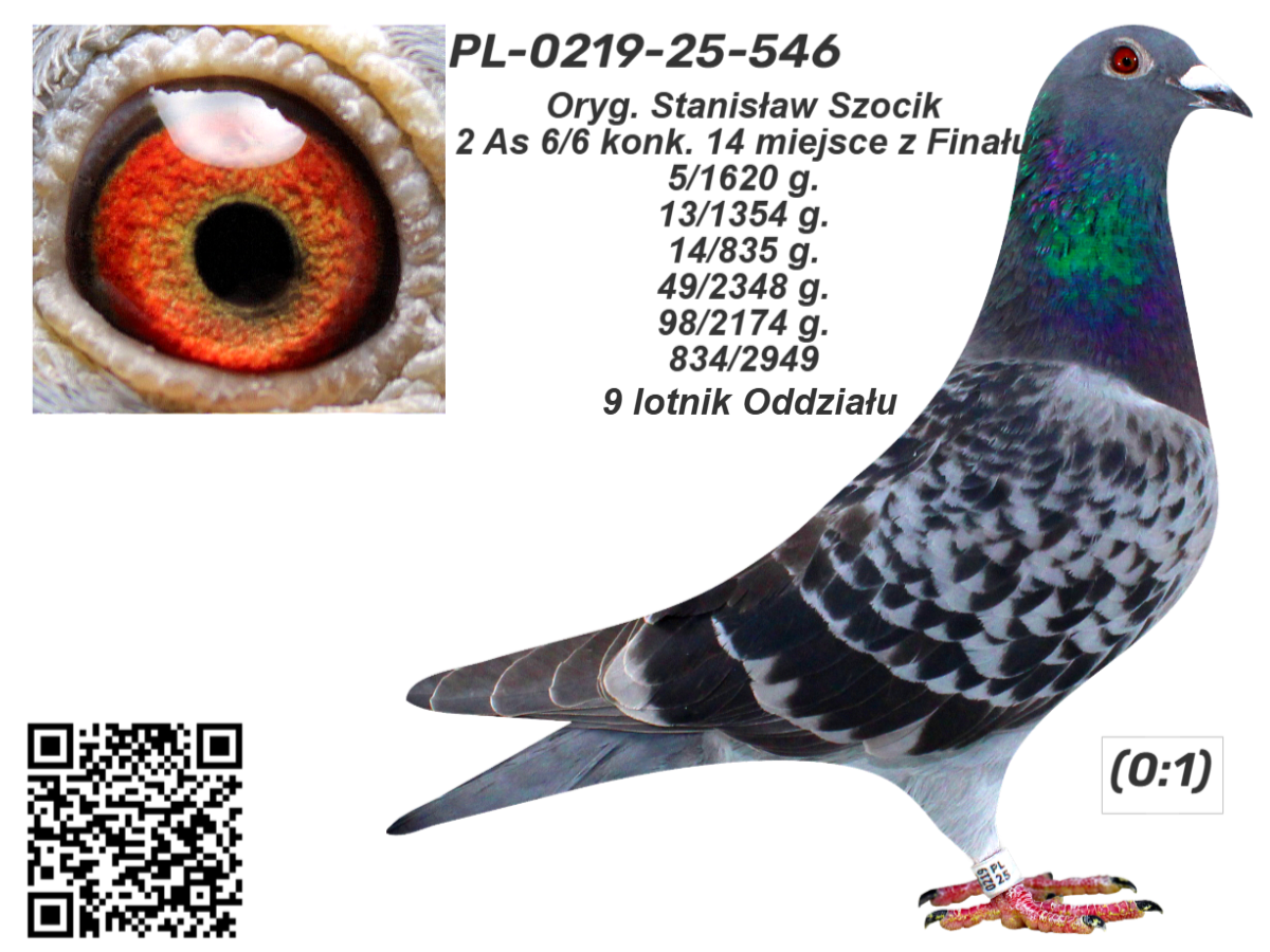 Oryg. Stanisław Szocik Gołąb lotowany w koleżeńskiej rywalizacji na WG Gatka. Gołębie na tym gołębniku rywalizowały z gołębiami z Oddziału gdzie wywalczyły najwyższe wyniki. Gołębie zaliczyły 5 lotów w Oddziale i lot okręgowy 367 km. pod wiatr.