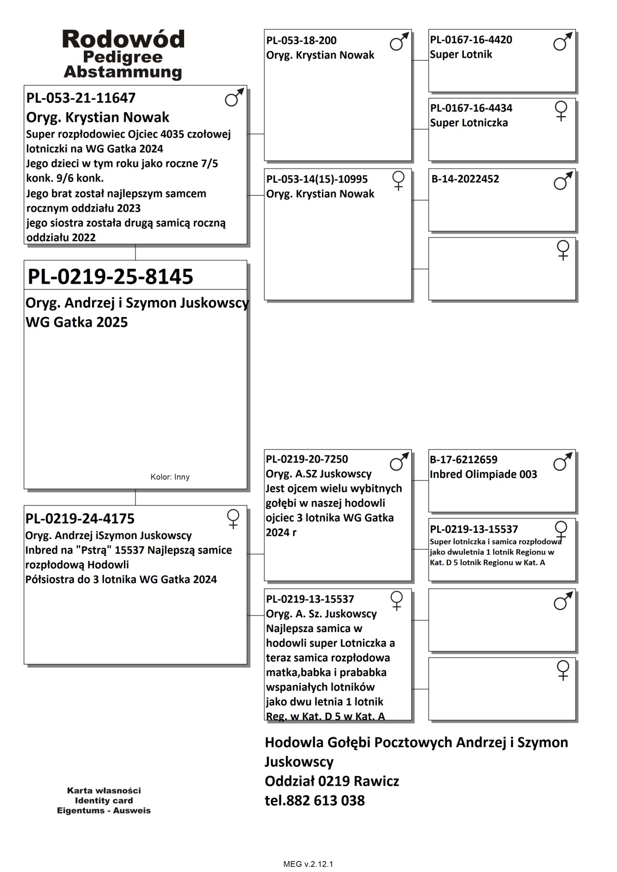 PL-0219-25-8145 - Oryg. Andrzej i Szymon Juskowscy Gołąb lotowany w koleżeńskiej rywalizacji na WG Gatka.