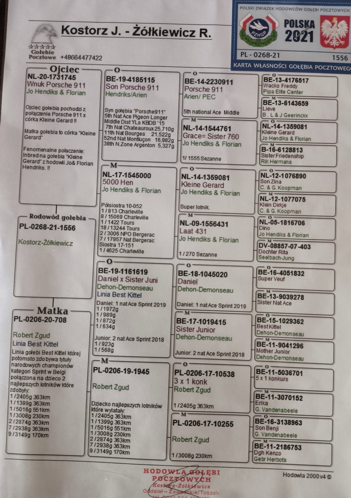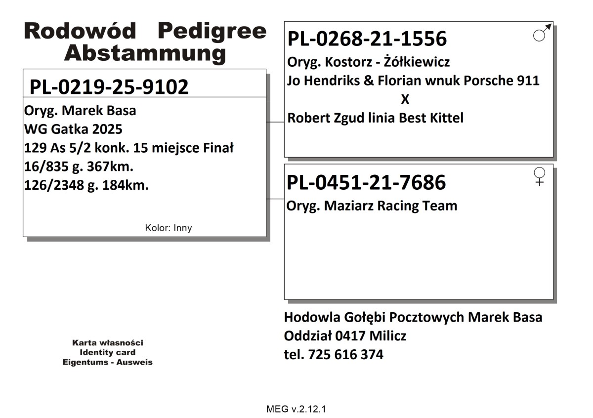 Oryg. Marek Basa Gołąb lotowany w koleżeńskiej rywalizacji na WG Gatka. Gołębie na tym gołębniku rywalizowały z gołębiami z Oddziału gdzie wywalczyły najwyższe wyniki. Gołębie zaliczyły 5 lotów w Oddziale i lot okręgowy 367 km. pod wiatr.