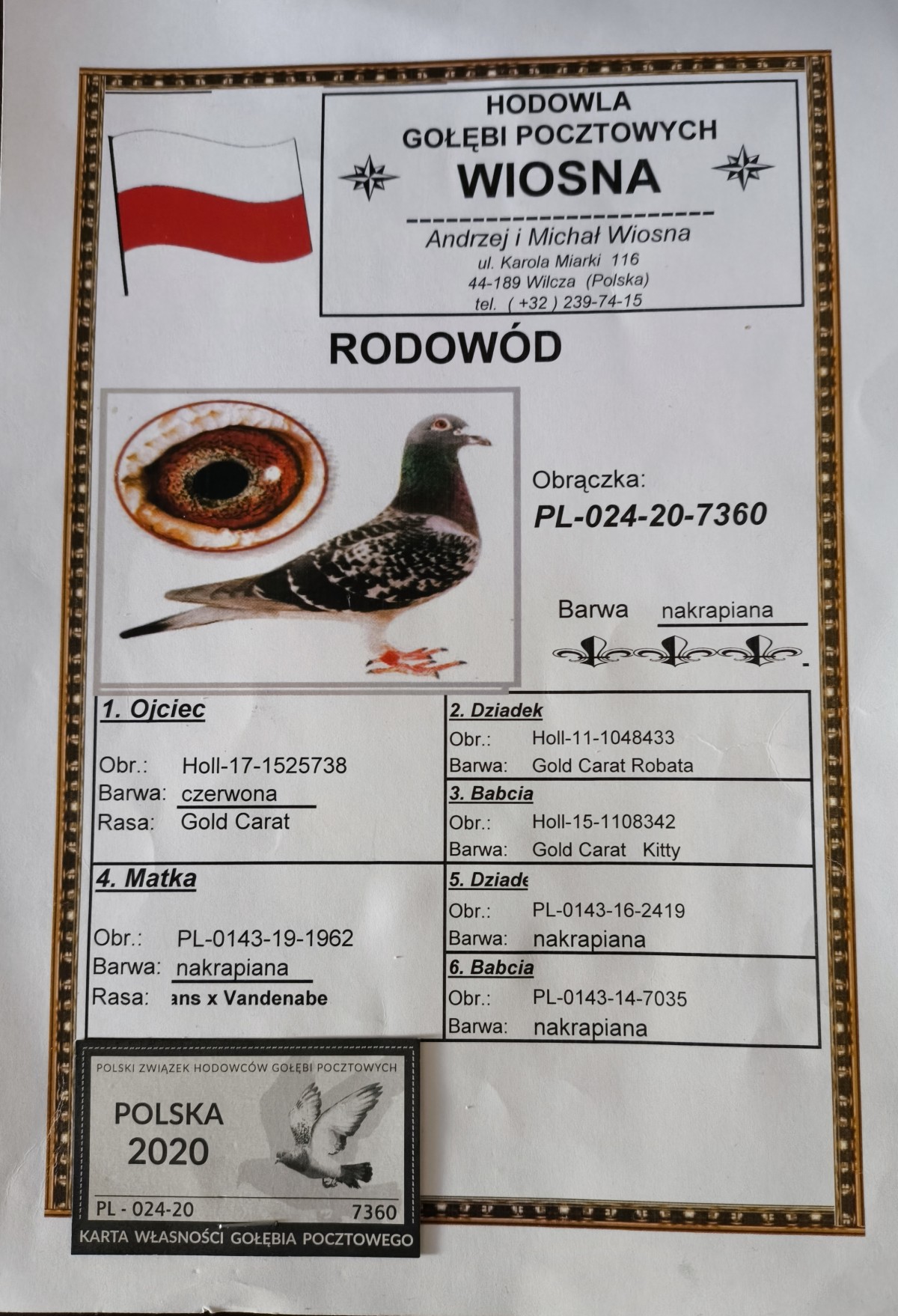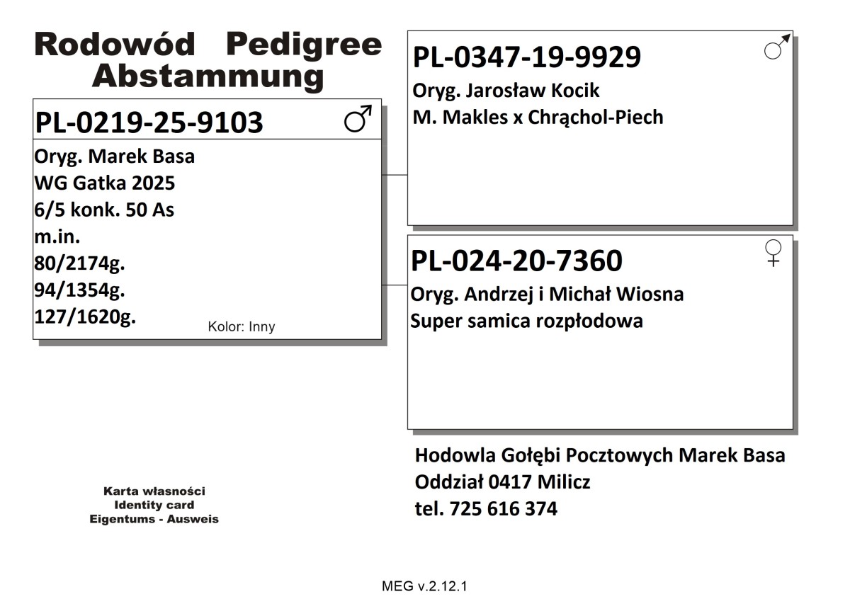 Płeć: młody gołąb Hodowca - rasa: Stachowscy Katarzyna i Marek Zakończenie: 31.10.2025 godz. 20:17