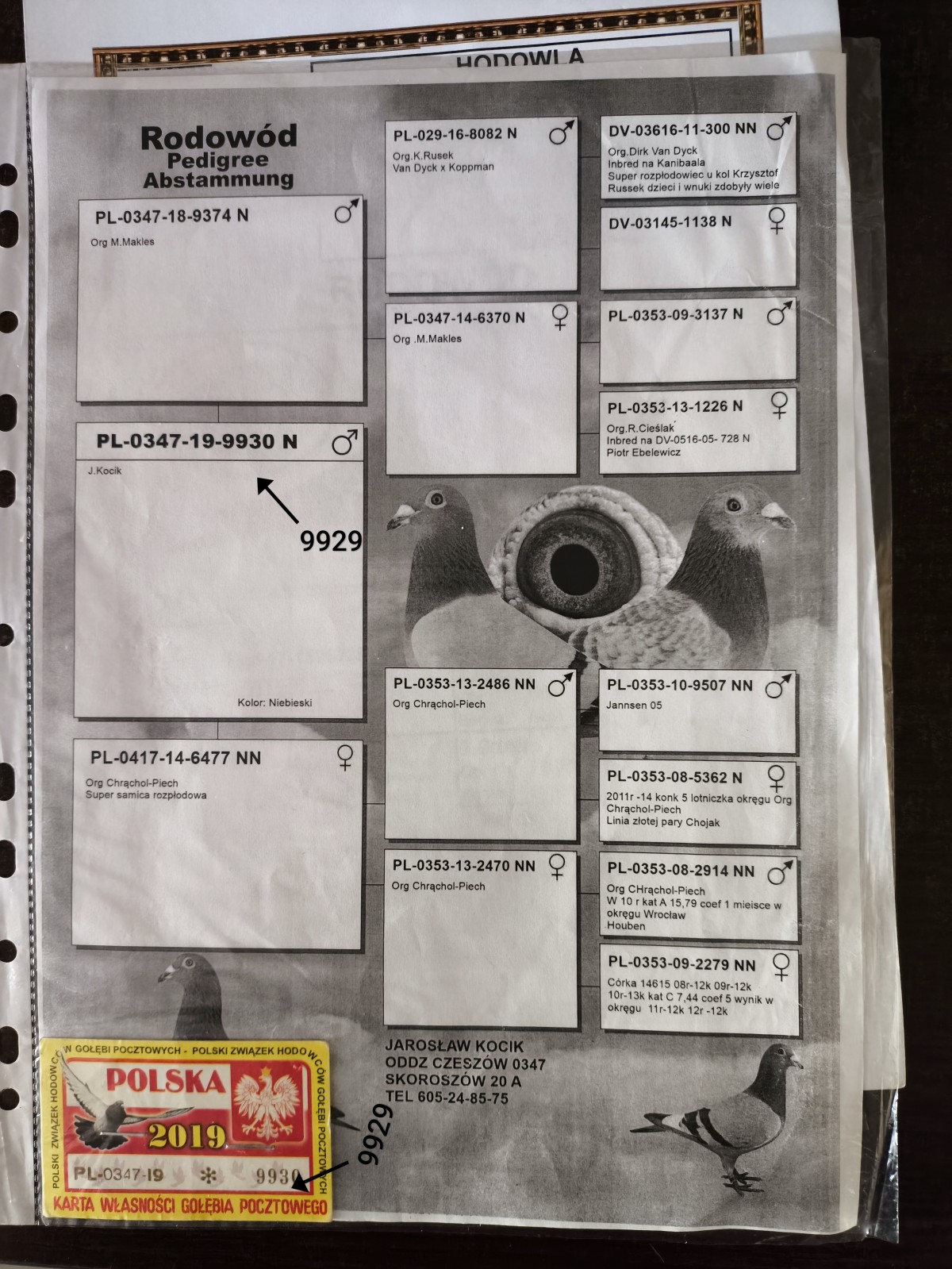 Oryg. Marek Basa Gołąb lotowany w koleżeńskiej rywalizacji na WG Gatka. Gołębie na tym gołębniku rywalizowały z gołębiami z Oddziału gdzie wywalczyły najwyższe wyniki. Gołębie zaliczyły 5 lotów w Oddziale i lot okręgowy 367 km. pod wiatr.
