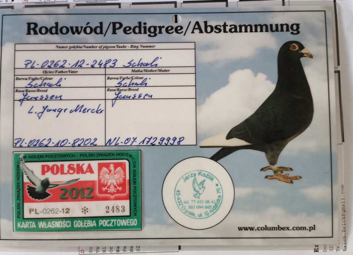 Oryg. Wojtek Kauch Gołąb lotowany w koleżeńskiej rywalizacji na WG Gatka. Gołębie na tym gołębniku rywalizowały z gołębiami z Oddziału gdzie wywalczyły najwyższe wyniki. Gołębie zaliczyły 5 lotów w Oddziale i lot okręgowy 367 km. pod wiatr.