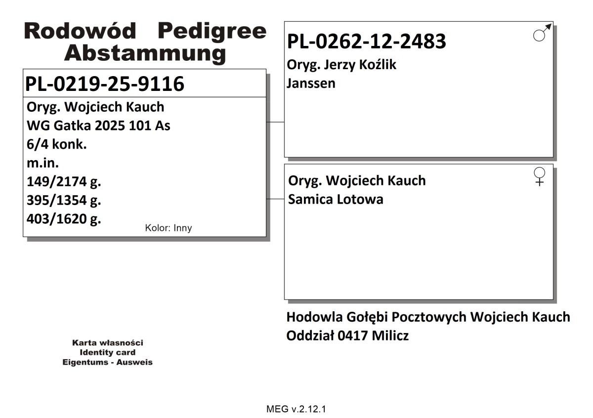 PL-0219-25-9116 - Oryg. Wojtek Kauch Gołąb lotowany w koleżeńskiej rywalizacji na WG Gatka.