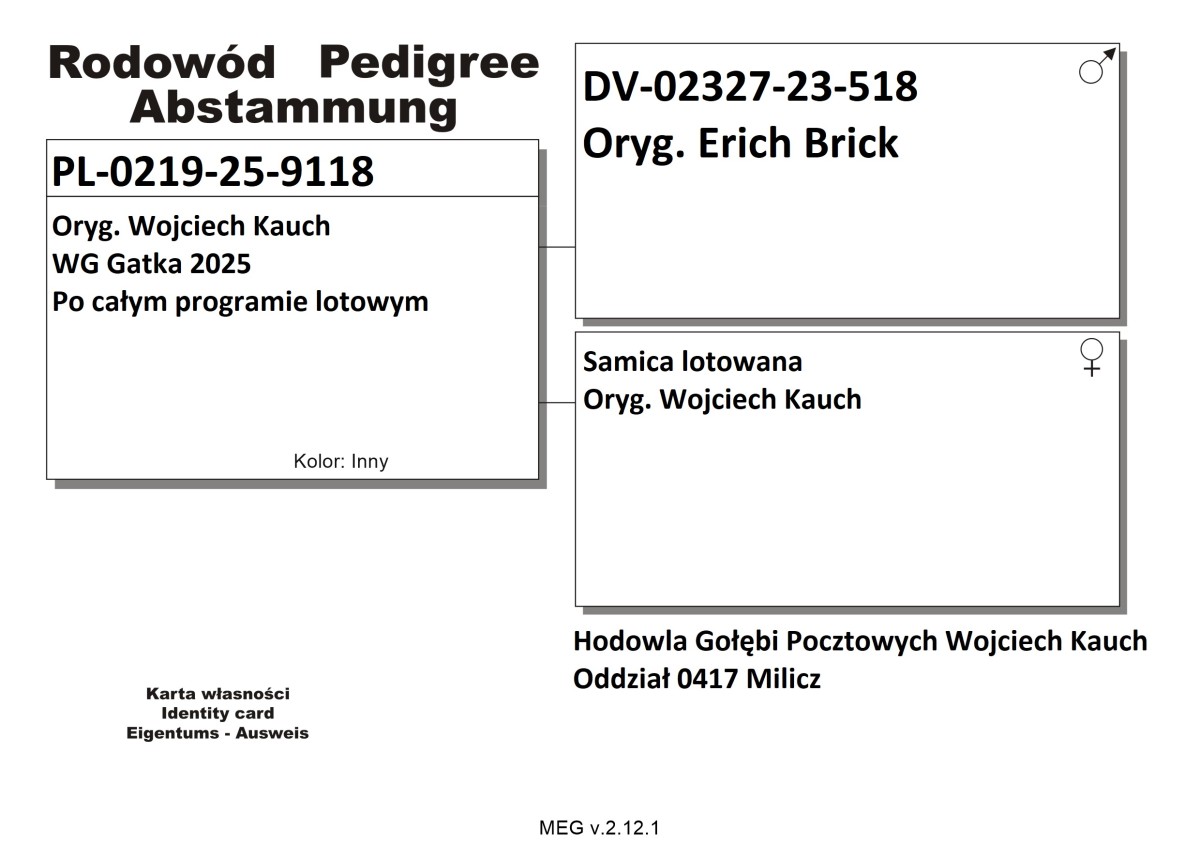 PL-0219-25-9118 - Oryg. Wojtek Kauch Gołąb lotowany w koleżeńskiej rywalizacji na WG Gatka.