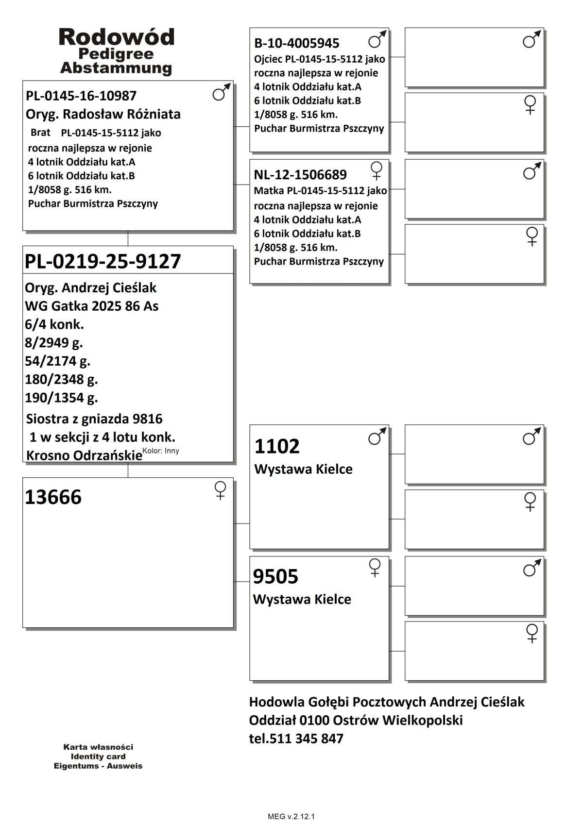 PL-0219-25-9127 - Oryg. Andrzej Cieślak Gołąb lotowany w koleżeńskiej rywalizacji na WG Gatka.
