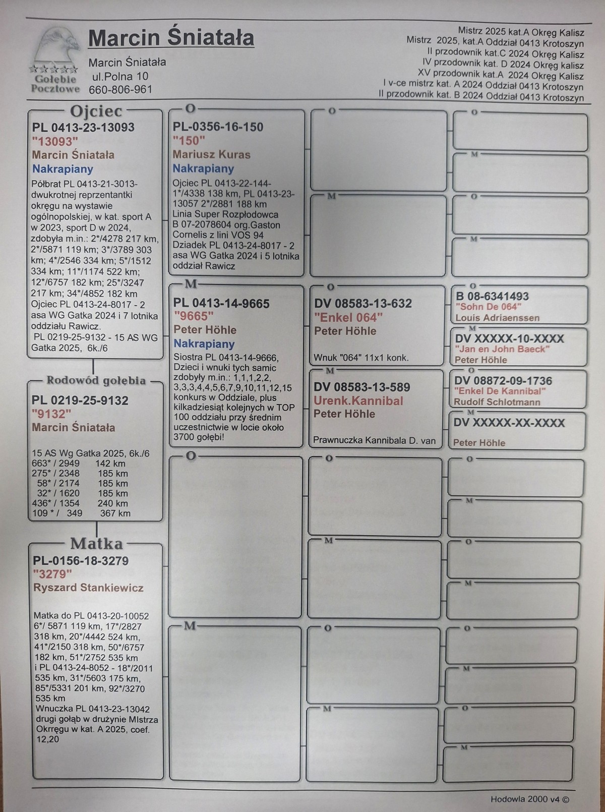 Oryg. Marcin Śniatała Gołąb lotowany w koleżeńskiej rywalizacji na WG Gatka. Gołębie na tym gołębniku rywalizowały z gołębiami z Oddziału gdzie wywalczyły najwyższe wyniki. Gołębie zaliczyły 5 lotów w Oddziale i lot okręgowy 367 km. pod wiatr.