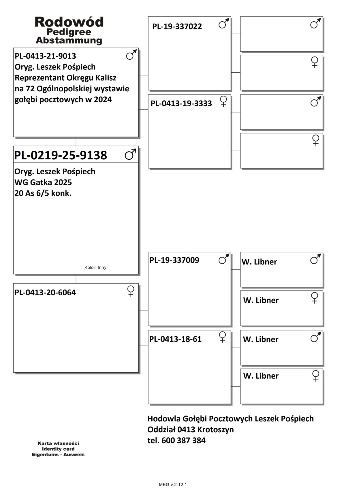 Płeć: samiec Hodowca - rasa: Stachowscy Katarzyna i Marek Zakończenie: 1.11.2025 godz. 20:20
