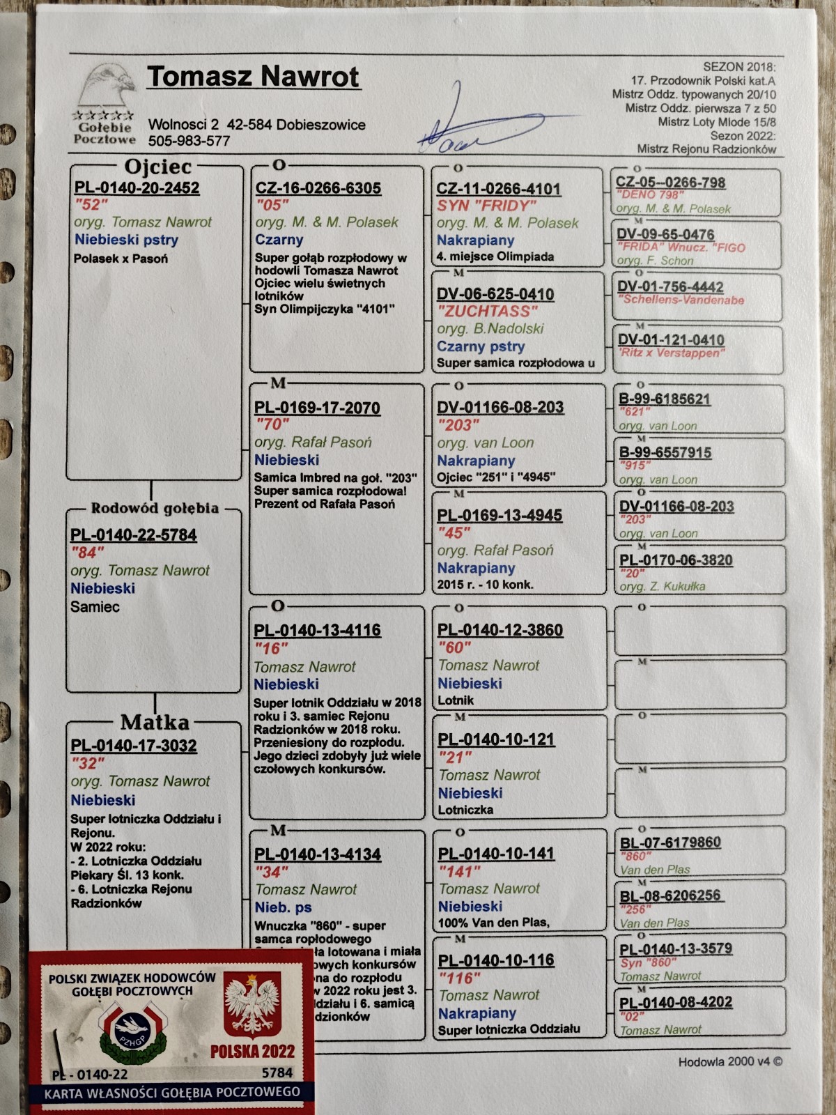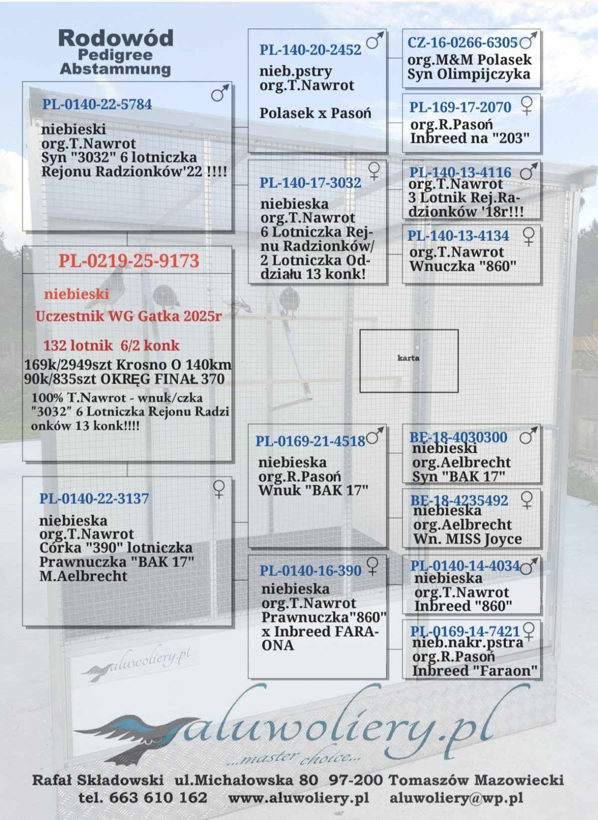 Oryg. Rafał Składowski Gołąb lotowany w koleżeńskiej rywalizacji na WG Gatka. Gołębie na tym gołębniku rywalizowały z gołębiami z Oddziału gdzie wywalczyły najwyższe wyniki. Gołębie zaliczyły 5 lotów w Oddziale i lot okręgowy 367 km. pod wiatr.