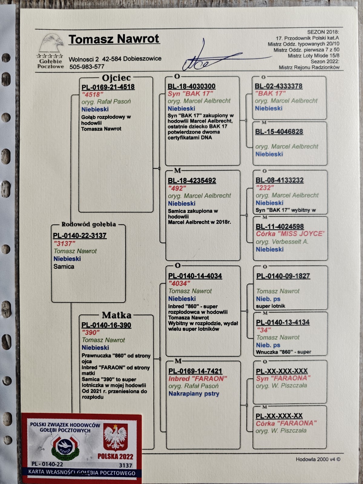 Płeć: samiec Hodowca - rasa: Stachowscy Katarzyna i Marek Zakończenie: 1.11.2025 godz. 20:46