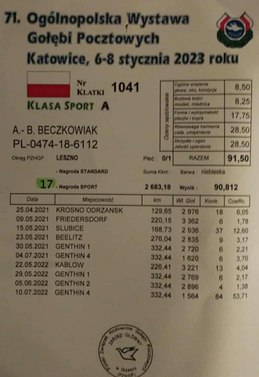 PL-0219-25-9182 - Oryg. Bartek Solis Gołąb lotowany w koleżeńskiej rywalizacji na WG Gatka.