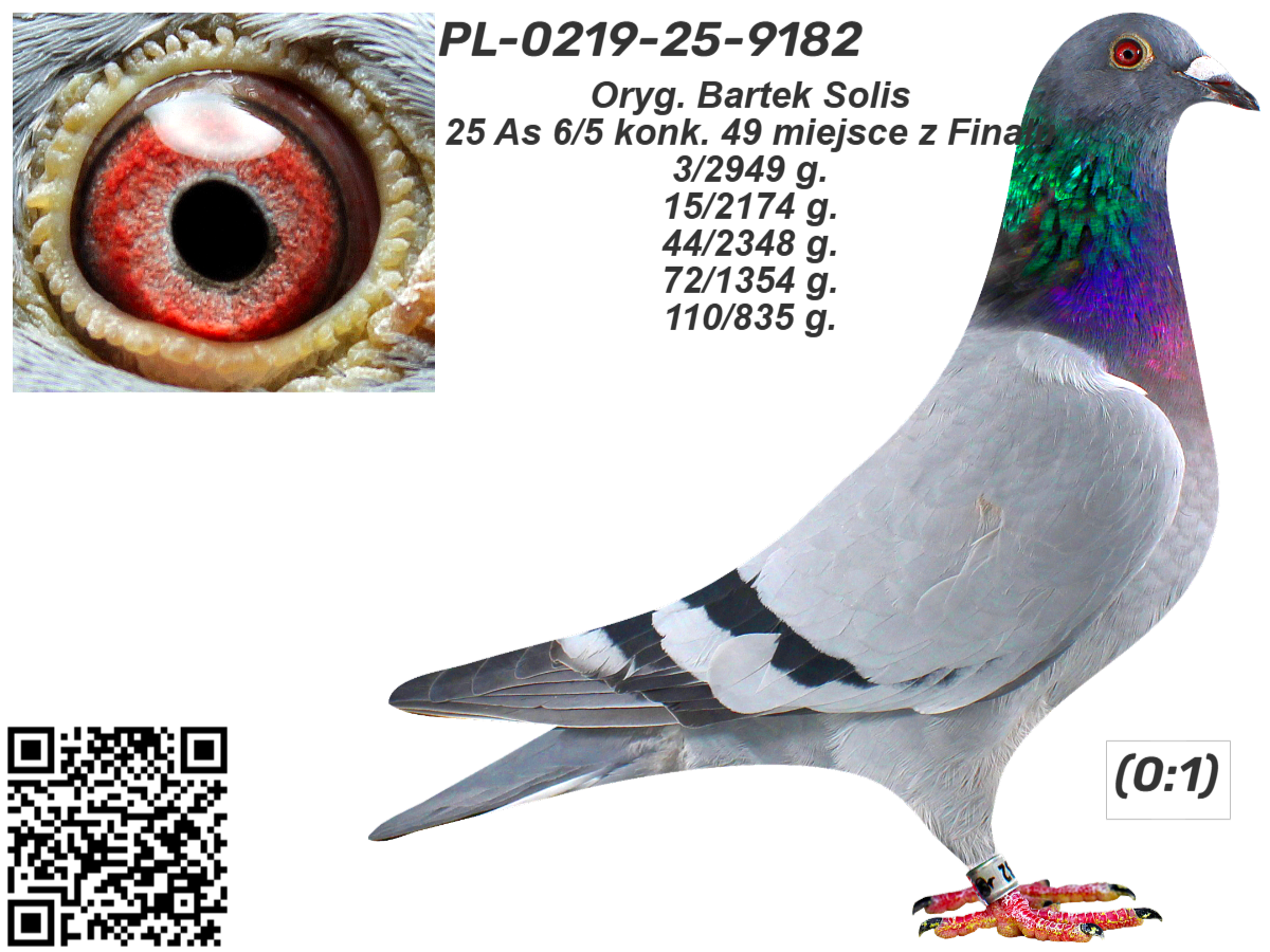 PL-0219-25-9182 - Oryg. Bartek Solis Gołąb lotowany w koleżeńskiej rywalizacji na WG Gatka.