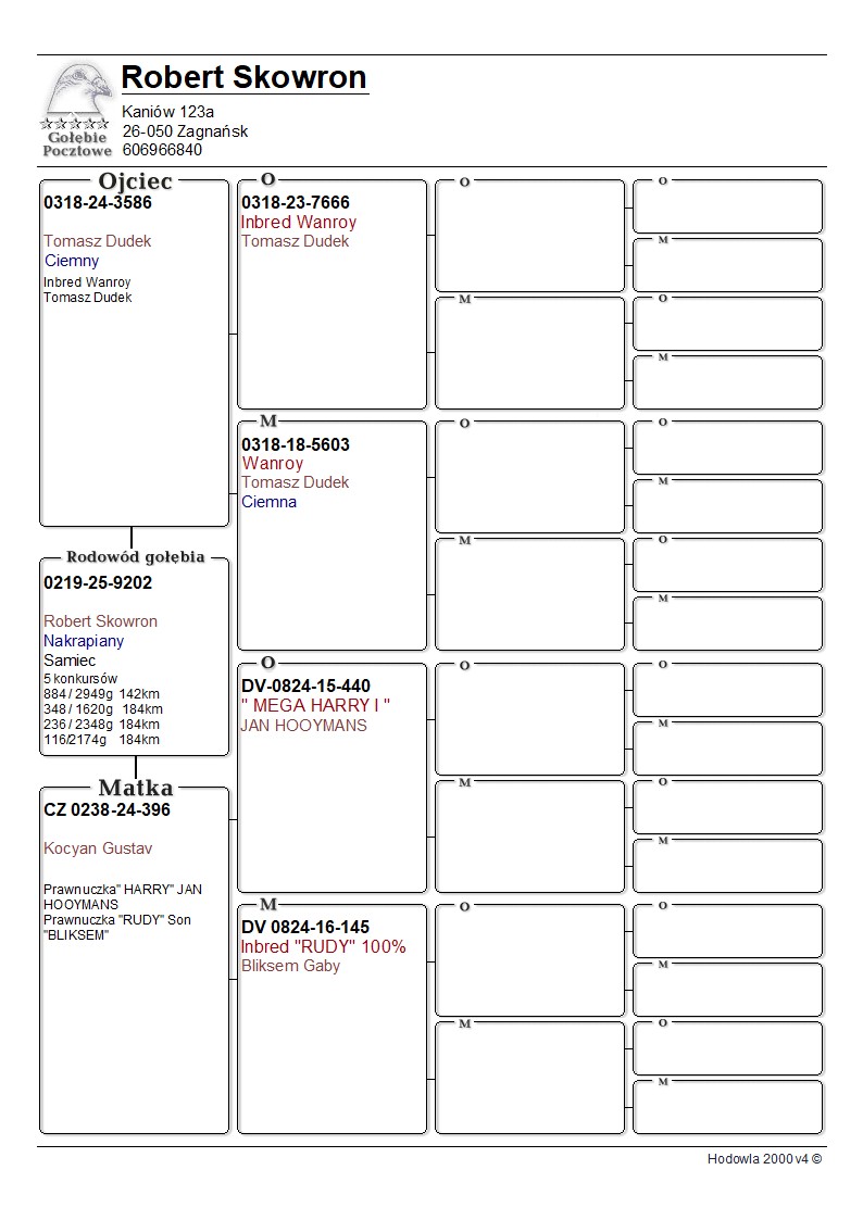 Oryg. Robert Skowron Gołąb lotowany w koleżeńskiej rywalizacji na WG Gatka. Gołębie na tym gołębniku rywalizowały z gołębiami z Oddziału gdzie wywalczyły najwyższe wyniki. Gołębie zaliczyły 5 lotów w Oddziale i lot okręgowy 367 km. pod wiatr.