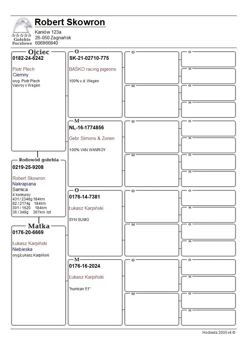 Oryg. Robert Skowron Gołąb lotowany w koleżeńskiej rywalizacji na WG Gatka. Gołębie na tym gołębniku rywalizowały z gołębiami z Oddziału gdzie wywalczyły najwyższe wyniki. Gołębie zaliczyły 5 lotów w Oddziale i lot okręgowy 367 km. pod wiatr.