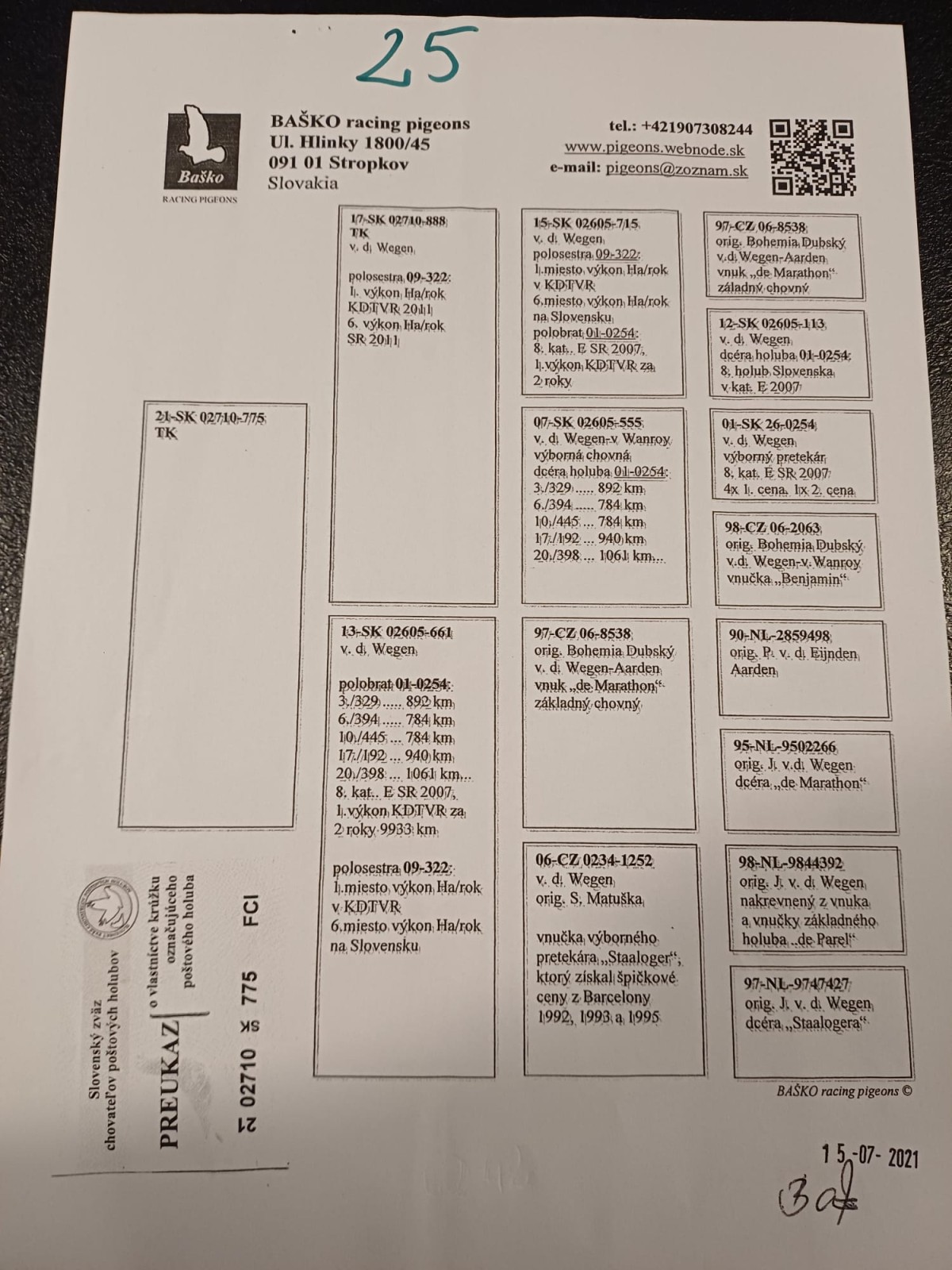 PL-0219-25-1657 - Oryg. Józef Pawlicki Gołąb lotowany w koleżeńskiej rywalizacji na WG Gatka.