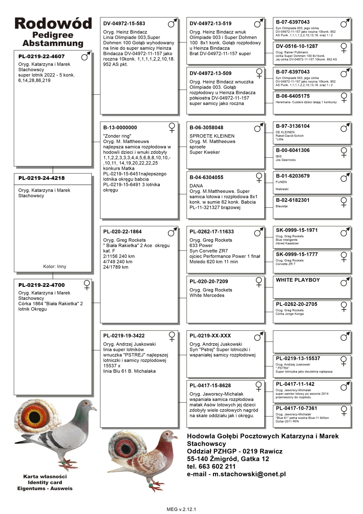 Płeć: młody gołąb Hodowca - rasa: Stachowscy Katarzyna i Marek Zakończenie: 1.11.2025 godz. 21:16