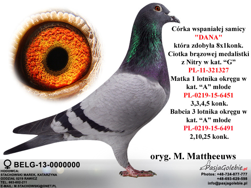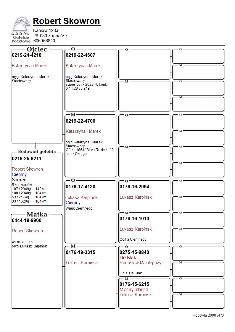 Oryg. Robert Skowron Gołąb lotowany w koleżeńskiej rywalizacji na WG Gatka. Gołębie na tym gołębniku rywalizowały z gołębiami z Oddziału gdzie wywalczyły najwyższe wyniki. Gołębie zaliczyły 5 lotów w Oddziale i lot okręgowy 367 km. pod wiatr.