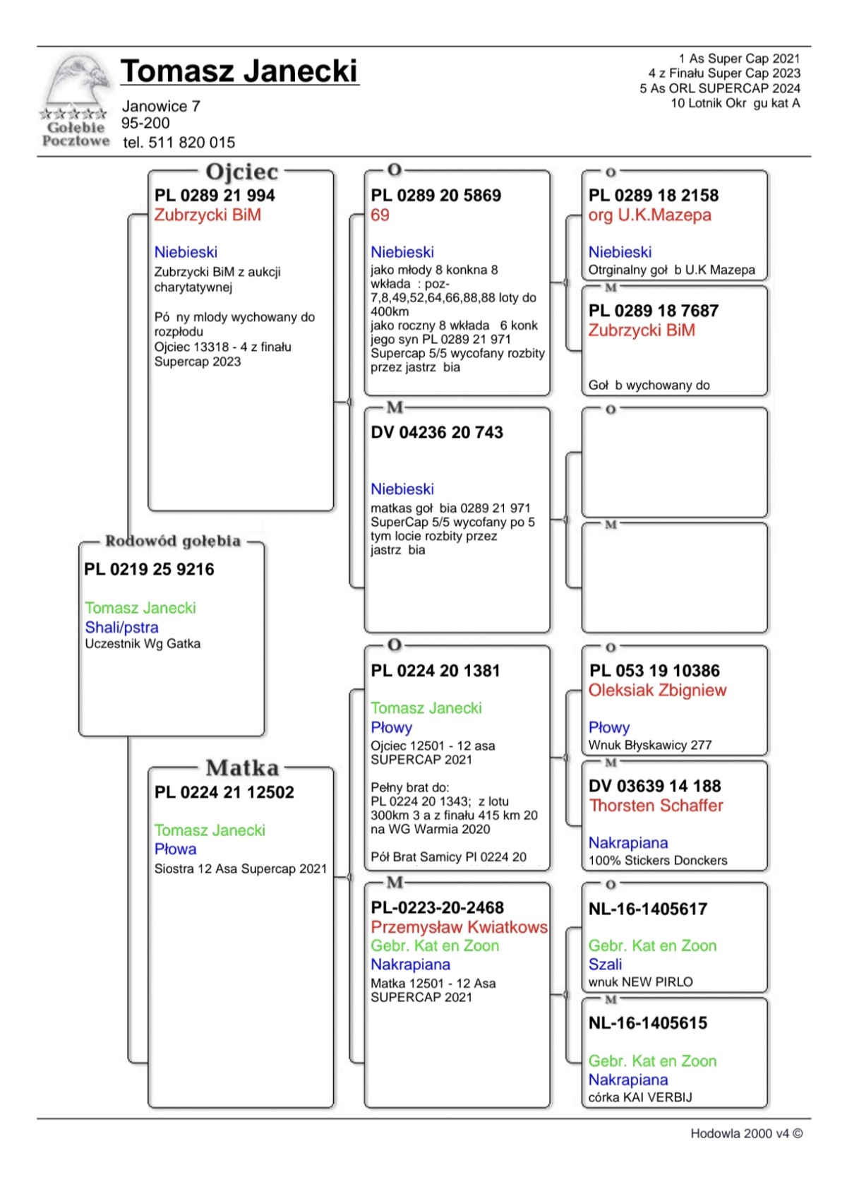 Oryg. Tomek Janecki Gołąb lotowany w koleżeńskiej rywalizacji na WG Gatka. Gołębie na tym gołębniku rywalizowały z gołębiami z Oddziału gdzie wywalczyły najwyższe wyniki. Gołębie zaliczyły 5 lotów w Oddziale i lot okręgowy 367 km. pod wiatr.