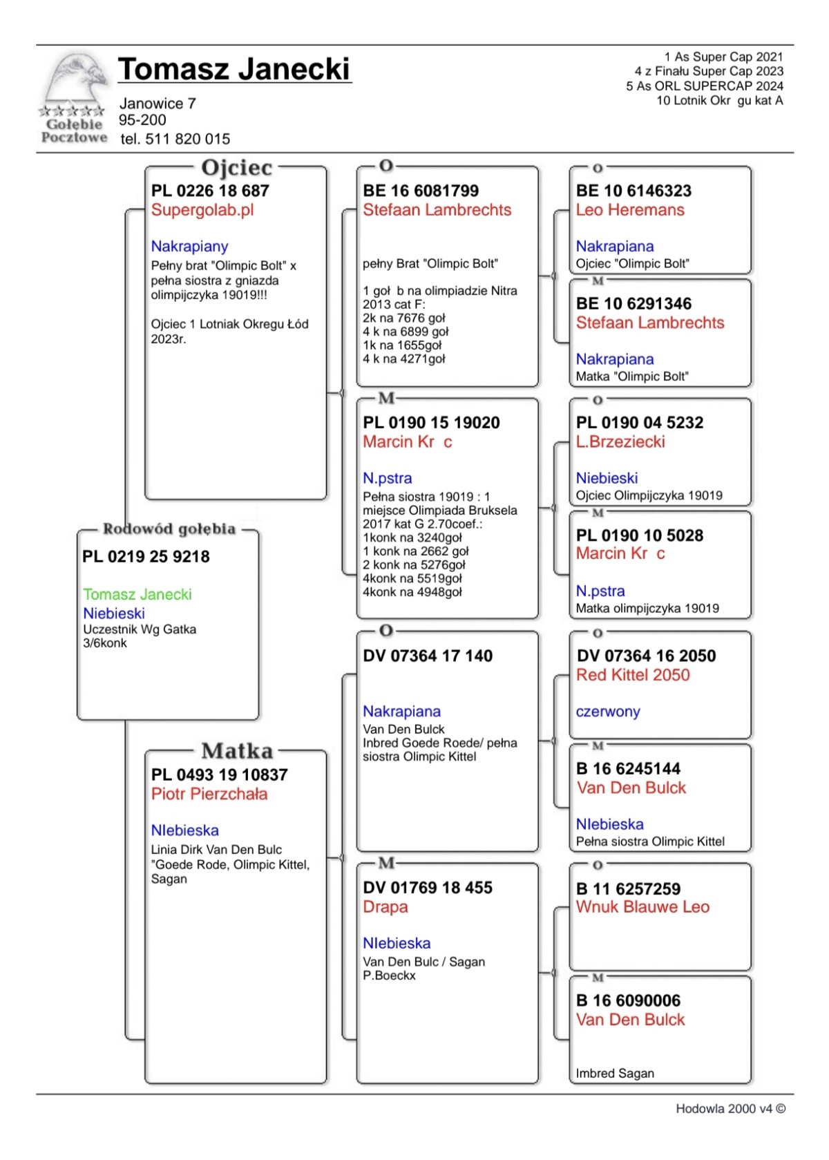 Oryg. Tomek Janecki Gołąb lotowany w koleżeńskiej rywalizacji na WG Gatka. Gołębie na tym gołębniku rywalizowały z gołębiami z Oddziału gdzie wywalczyły najwyższe wyniki. Gołębie zaliczyły 5 lotów w Oddziale i lot okręgowy 367 km. pod wiatr.