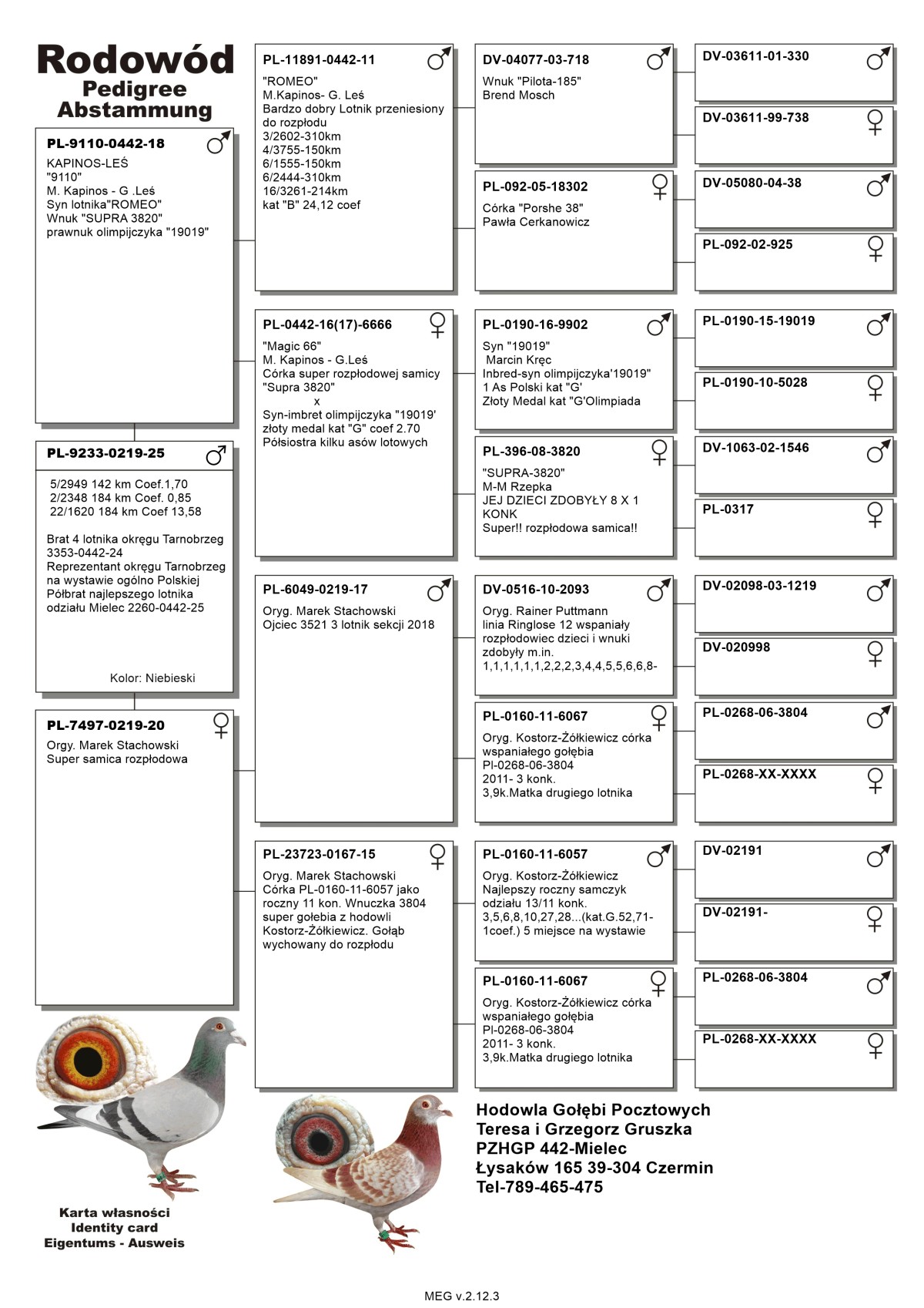 Oryg. Teresa i Grzegorz Gruszka Gołąb lotowany w koleżeńskiej rywalizacji na WG Gatka. Gołębie na tym gołębniku rywalizowały z gołębiami z Oddziału gdzie wywalczyły najwyższe wyniki. Gołębie zaliczyły 5 lotów w Oddziale i lot okręgowy 367 km. pod wiatr.
