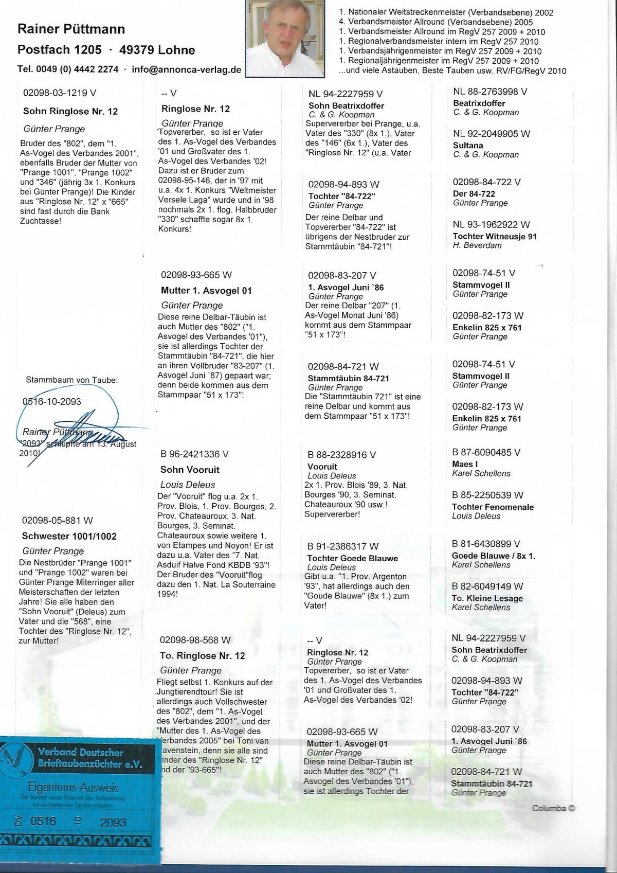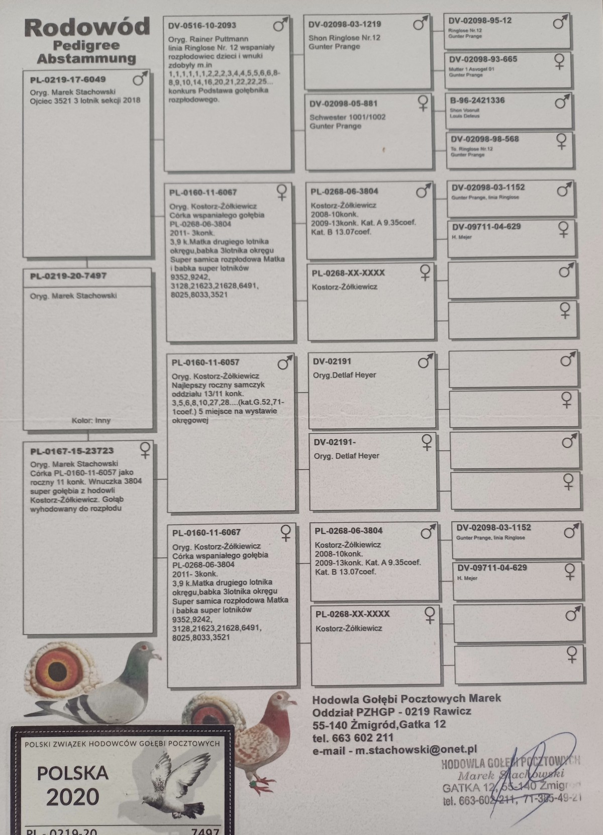 PL-0447-25-1632 - Oryg. Paweł Gembrowicz Gołąb lotowany w koleżeńskiej rywalizacji na WG Gatka.