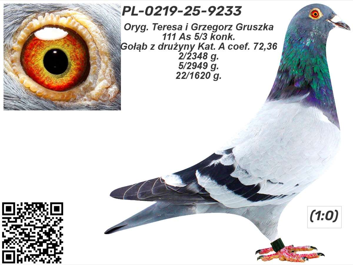 PL-0219-25-9233 - Oryg. Teresa i Grzegorz Gruszka Gołąb lotowany w koleżeńskiej rywalizacji na WG Gatka.