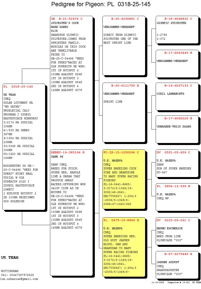 PL-0318-25-145 - Oryg. UK Team Gołąb lotowany w koleżeńskiej rywalizacji na WG Gatka.