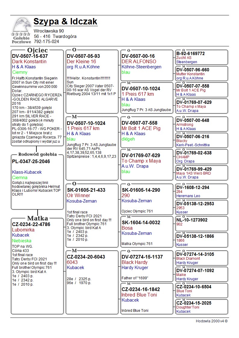 Oryg. Tadeusiak - Idczak Gołąb lotowany w koleżeńskiej rywalizacji na WG Gatka. Gołębie na tym gołębniku rywalizowały z gołębiami z Oddziału gdzie wywalczyły najwyższe wyniki. Gołębie zaliczyły 5 lotów w Oddziale i lot okręgowy 367 km. pod wiatr.