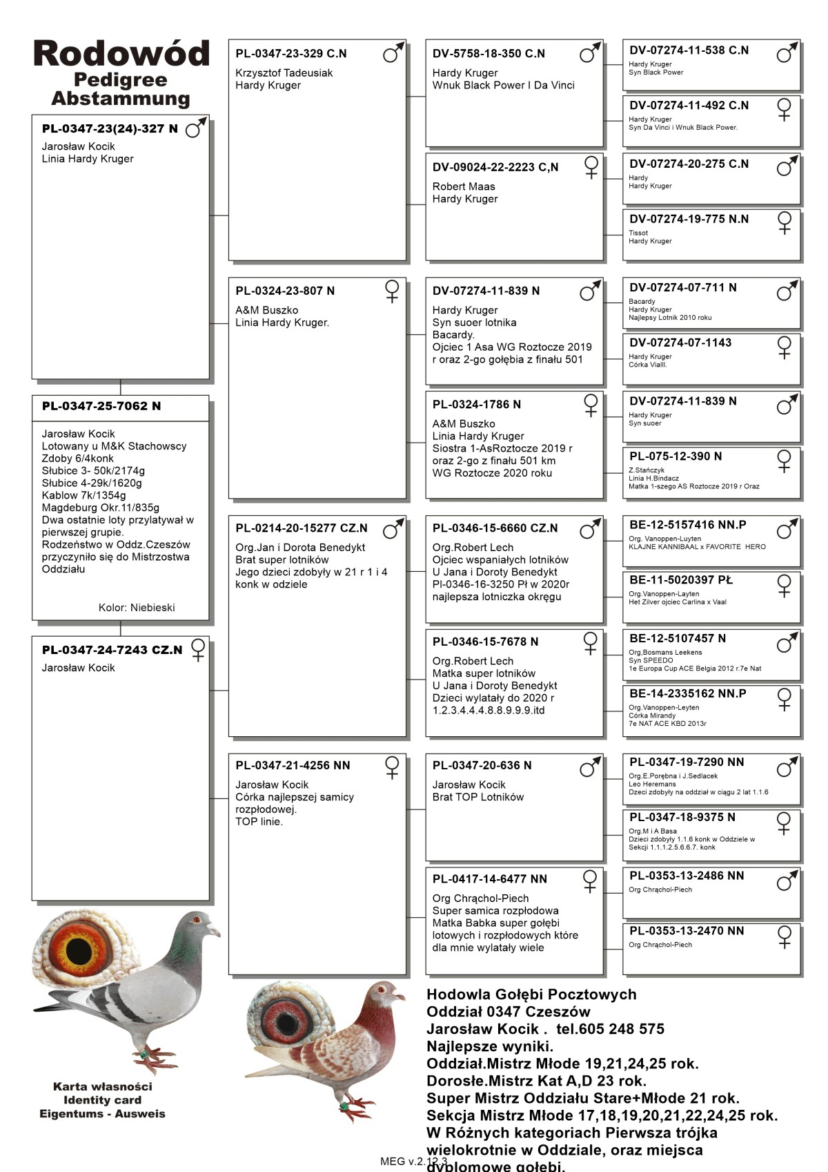 PL-0347-25-7062 - Oryg. Jarosław Kocik Gołąb lotowany w koleżeńskiej rywalizacji na WG Gatka.