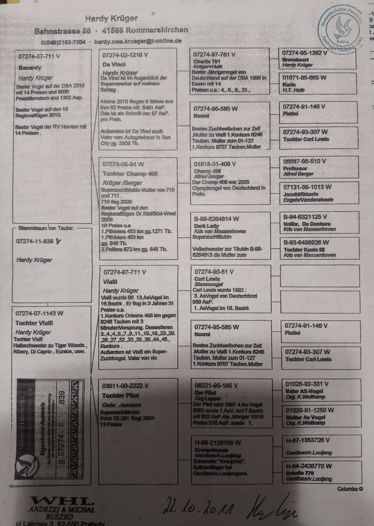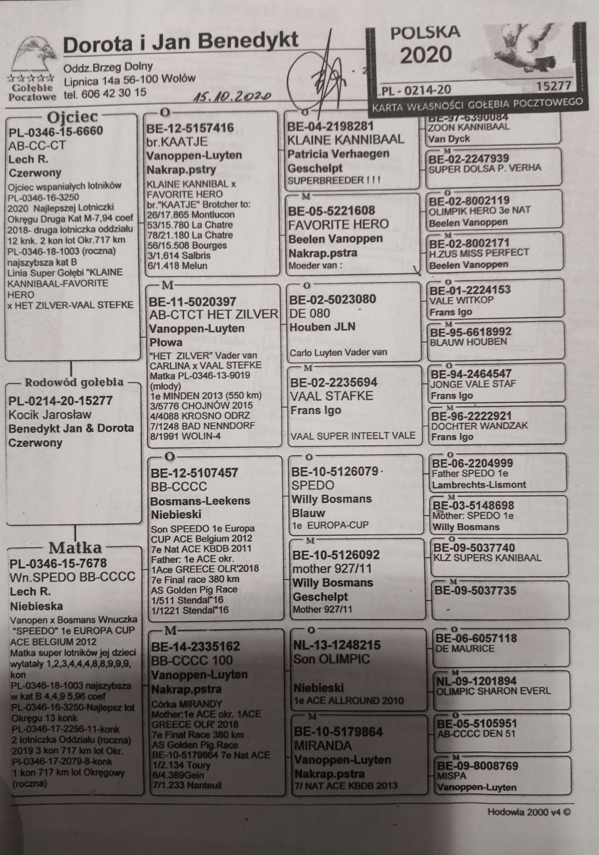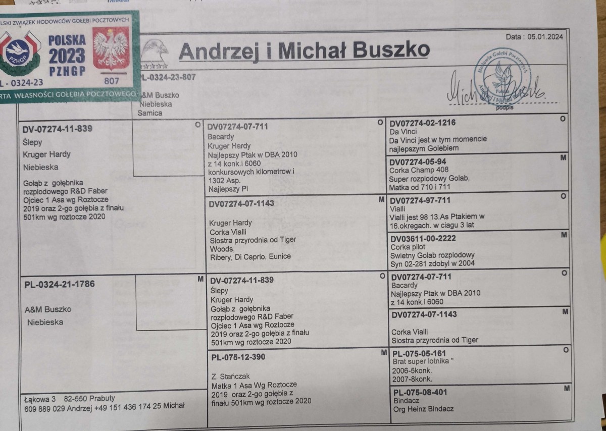 Oryg. Jarosław Kocik Gołąb lotowany w koleżeńskiej rywalizacji na WG Gatka. Gołębie na tym gołębniku rywalizowały z gołębiami z Oddziału gdzie wywalczyły najwyższe wyniki. Gołębie zaliczyły 5 lotów w Oddziale i lot okręgowy 367 km. pod wiatr.