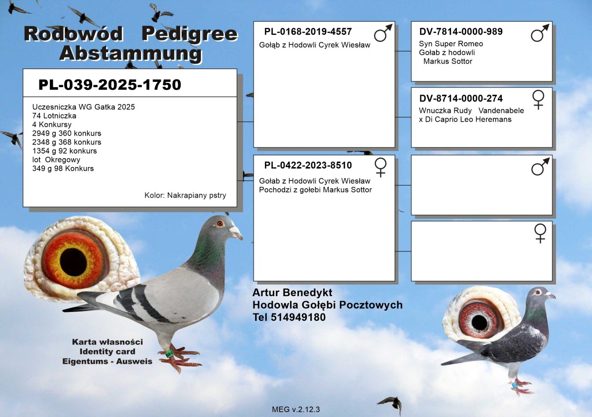 PL-039-25-1750 - Oryg. Artur Benedykt Gołąb lotowany w koleżeńskiej rywalizacji na WG Gatka.