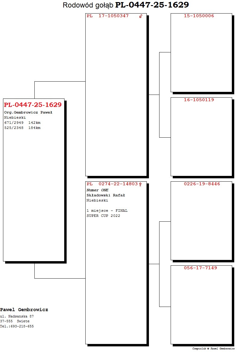 PL-0447-25-1629 - Oryg. Paweł Gembrowicz Gołąb lotowany w koleżeńskiej rywalizacji na WG Gatka.