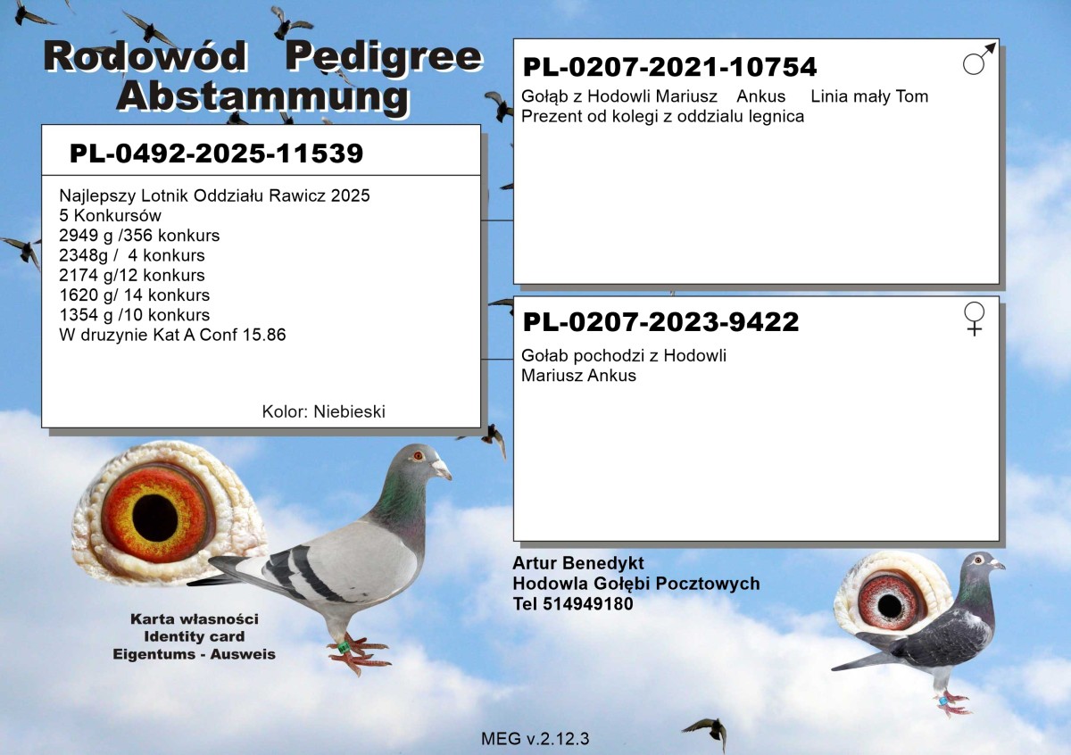 PL-0492-25-11539 - Oryg. Artur Benedykt Gołąb lotowany w koleżeńskiej rywalizacji na WG Gatka.