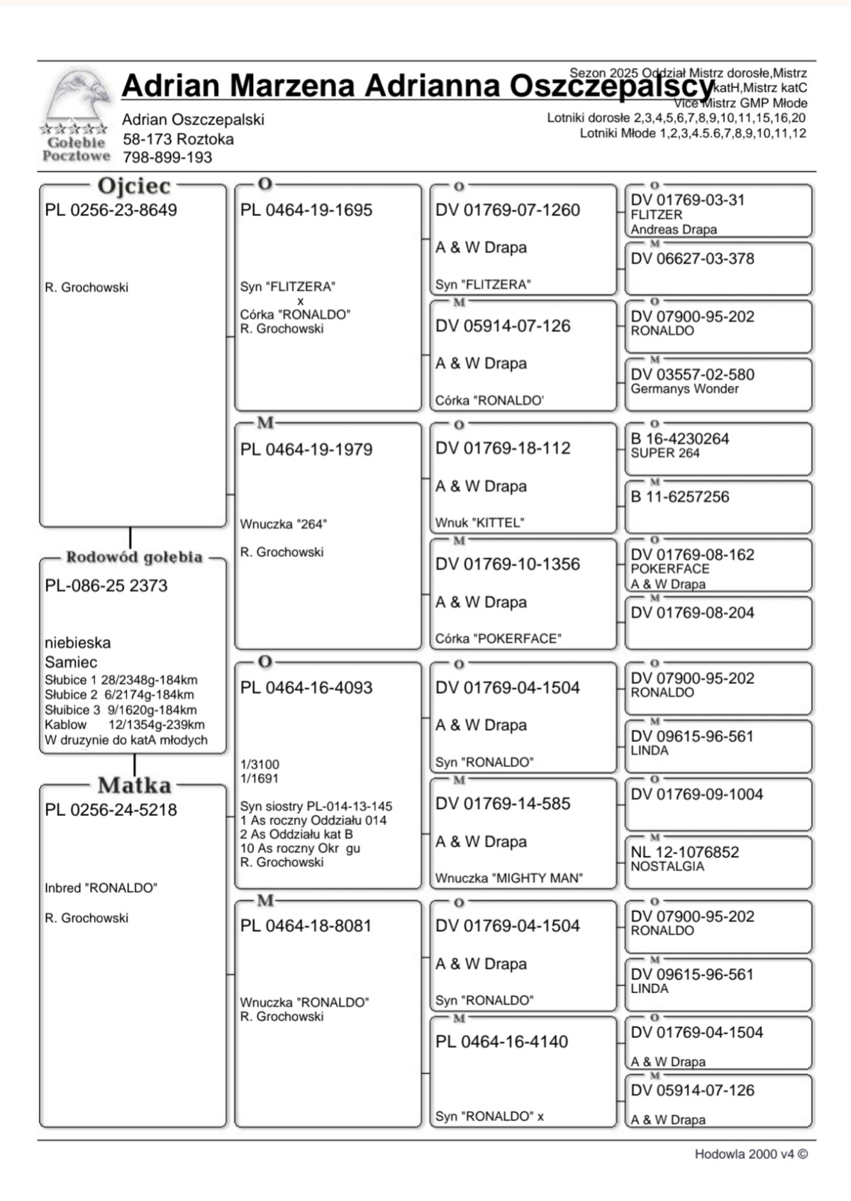 PL-086-25-2373 - Oryg. Oszczepalscy Team Gołąb lotowany w koleżeńskiej rywalizacji na WG Gatka.