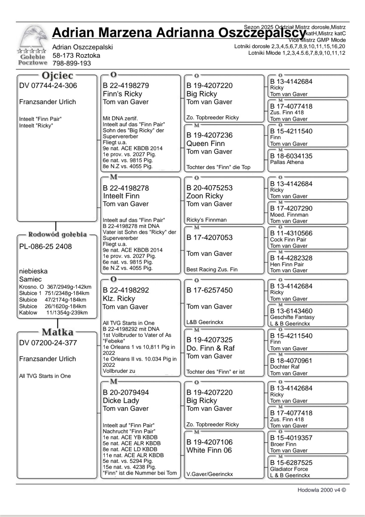 PL-086-25-2408 - Oryg. Oszczepalscy Team Gołąb lotowany w koleżeńskiej rywalizacji na WG Gatka.