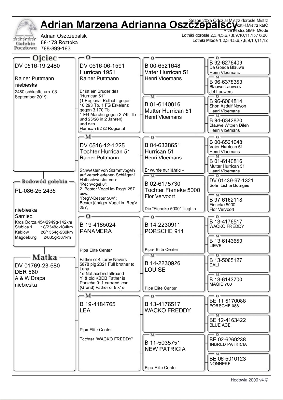 Płeć: samiec Hodowca - rasa: Stachowscy Katarzyna i Marek Zakończenie: 2.11.2025 godz. 20:08
