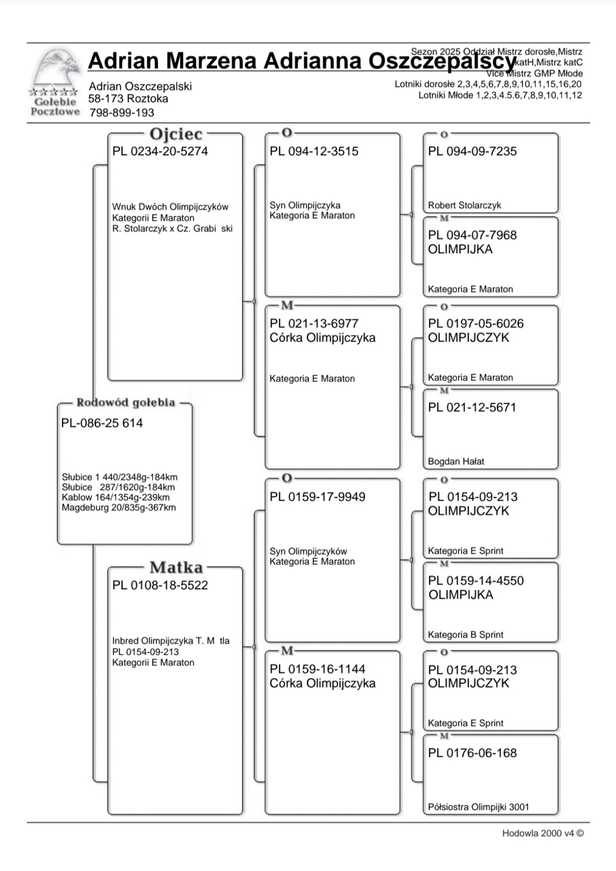 PL-086-25-614 - Oryg. Oszczepalscy Team Gołąb lotowany w koleżeńskiej rywalizacji na WG Gatka.
