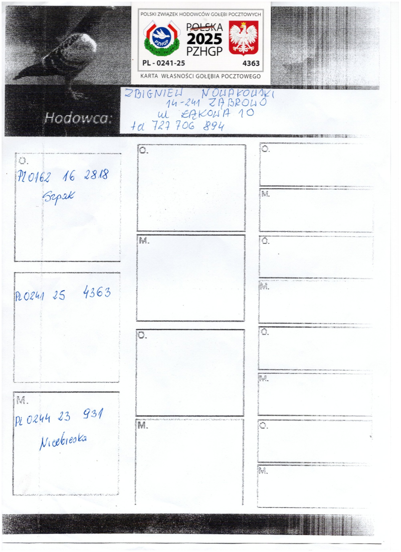 Płeć: samiec Hodowca - rasa: Oryg.NOWAKOWSKI ZBIGNIEW Zakończenie: 28.10.2025 godz. 20:51