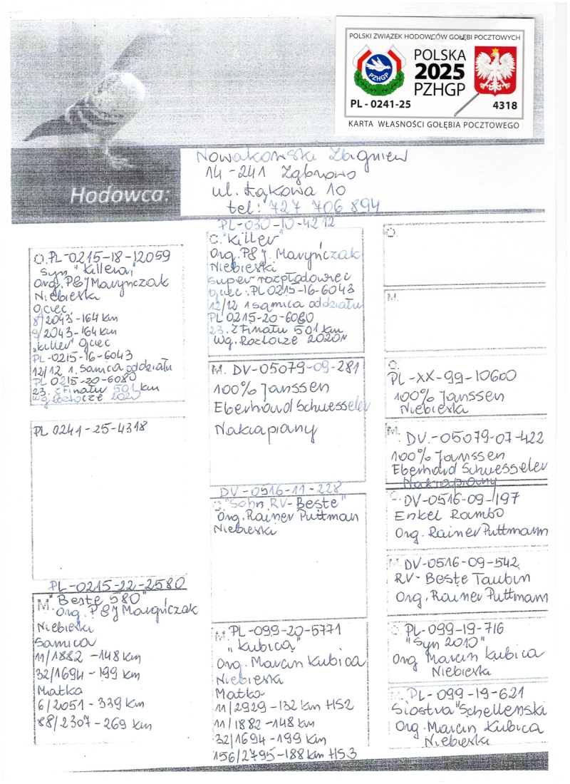 Płeć: samica Hodowca - rasa: Oryg.NOWAKOWSKI ZBIGNIEW Zakończenie: 28.10.2025 godz. 20:54